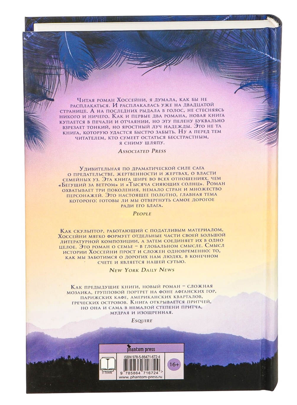 Новый роман Халеда Хоссейни, прозрачный, пронзительный, многоголосый, о том, что любое решение, принятое за другого человека, — добра ради или зла — имеет цену, и судьба непременно выставит за него счет. Это роман о силе дешевых слов и дорогих поступков, о коварстве жизненного предназначения, о неизбежности воздаяния, о шумном малодушии и безмолвной преданности.