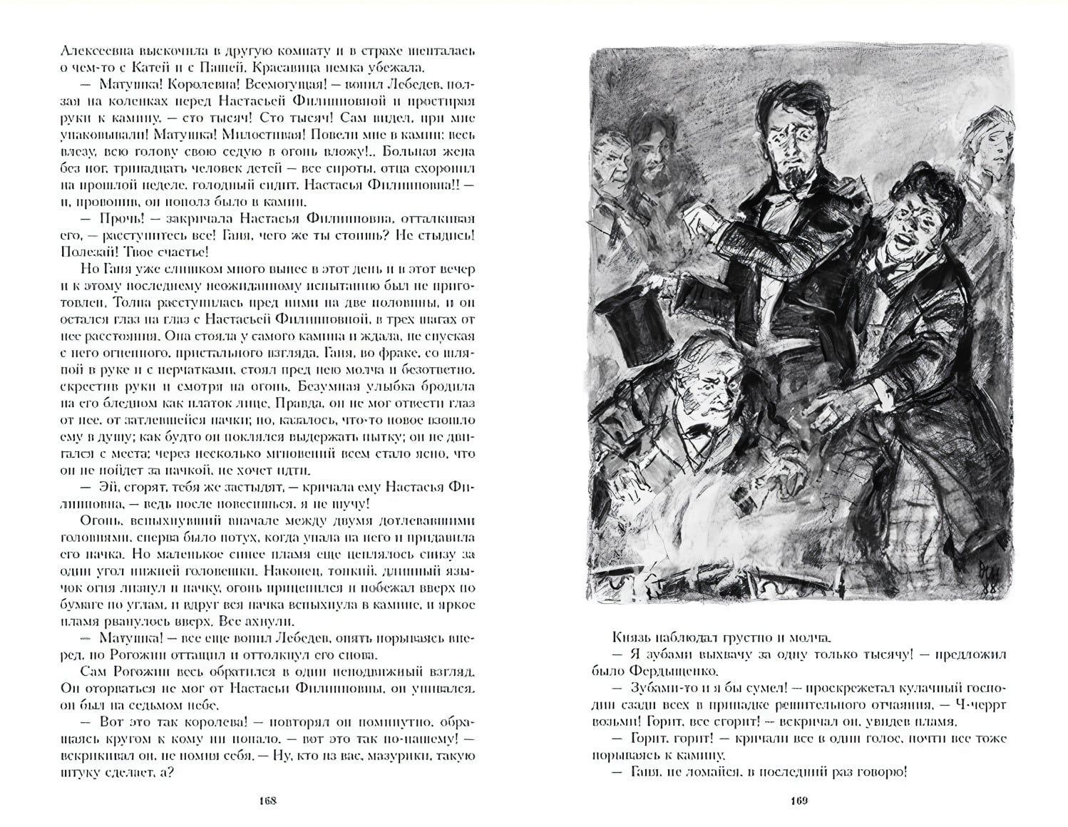 Эти ярко освещенные люди на рисунках Дементия Шмаринова оживают, говорят, плачут и смеются, погружая читателя в идеи и страсти героев романа.