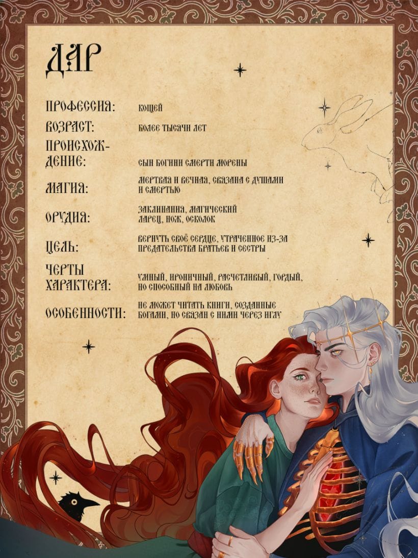 Увлекательное фэнтези-путешествие двух таких непохожих созданий: ведьмы, желающей найти способ убить Кощея, и помощника Кощея, хранящего свои тайны. Дуэт, обещающий яркие впечатления!