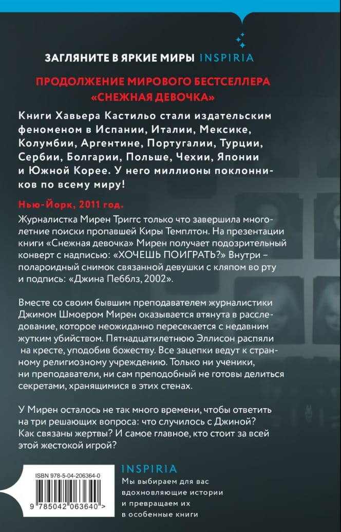 Нью-Йорк, 2011 год. Журналистка Мирен Триггс только что завершила многолетние поиски пропавшей Киры Темплтон. На презентации книги «Снежная девочка» Мирен получает подозрительный конверт с надписью «Хочешь поиграть?». Внутри — полароидный снимок связанной девушки с кляпом во рту и подпись «Джина Пебблз, 2002».