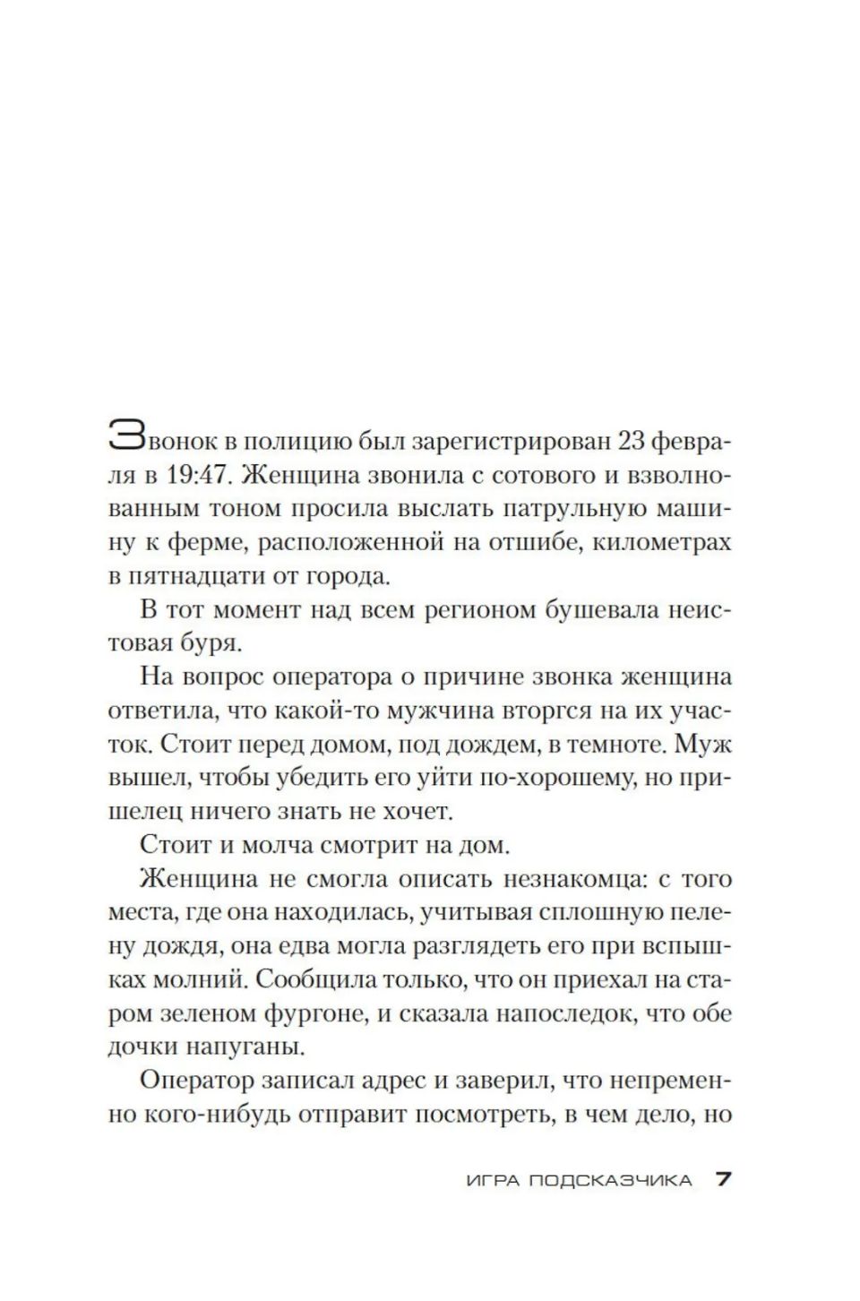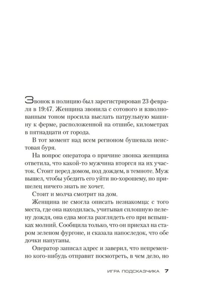 Есть только один человек,  способный раскрыть таинственное преступление, это Мила Васкес, но она больше не служит в полиции. Стремясь обрести покой, она поселилась с дочкой Алисой в домике на берегу озера. И все же ей приходится ввязаться в жестокую игру, игру, которую ведет Подсказчик, загадочный персонаж, превращающий людей в марионеток, исполняющих его волю. Она  уже сталкивалась, расследуя дело об исчезнувших девочках. Мила Васкес принимает вызов. Слишком многое поставлено на карту, в том числе жизнь ее дочери…