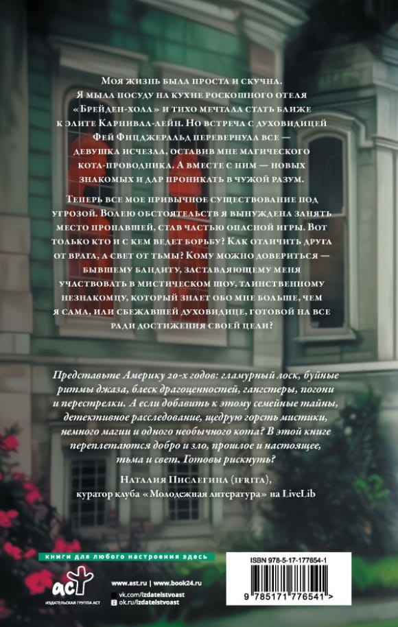 Моя жизнь была проста и скучна. Я мыла посуду на кухне роскошного отеля «Брейден-холл» и тихо мечтала стать ближе к элите Карнивал-лейн. Но встреча с духовидицей Фей Фицджеральд перевернула все — девушка исчезла, оставив мне магического кота-проводника. А вместе с ним — новых знакомых и дар проникать в чужой разум. Теперь все мое привычное существование под угрозой. Волею обстоятельств я вынуждена занять место пропавшей, став частью опасной игры.