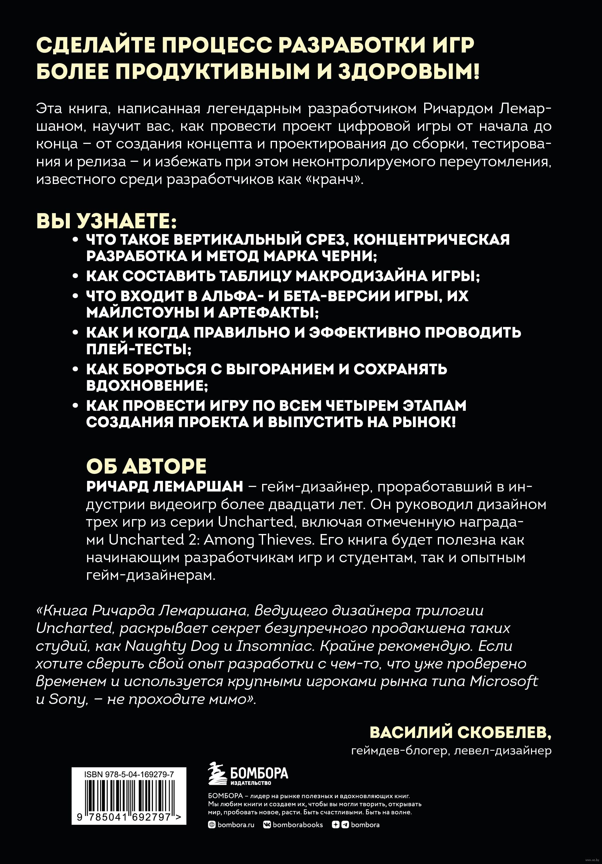 Эта книга, написанная легендарным разработчиком Ричардом Лемаршаном, научит вас, как провести проект цифровой игры от начала до конца — от создания концепта и проектирования до сборки, тестирования и релиза — и избежать при этом неконтролируемого переутомления, известного среди разработчиков как «кранч».