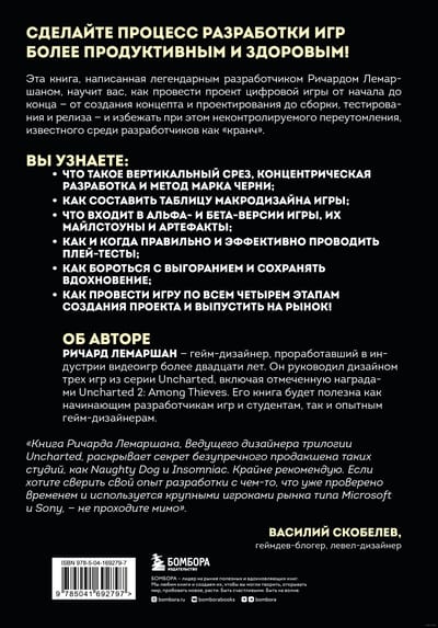 Ричард Лемаршан — гейм-дизайнер, проработавший в индустрии видеоигр более двадцати лет. Он руководил дизайном трех игр из серии Uncharted, включая отмеченную наградами Uncharted 2: Among Thieves. Его книга будет полезна как начинающим разработчикам игр и студентам, так и опытным гейм-дизайнерам.