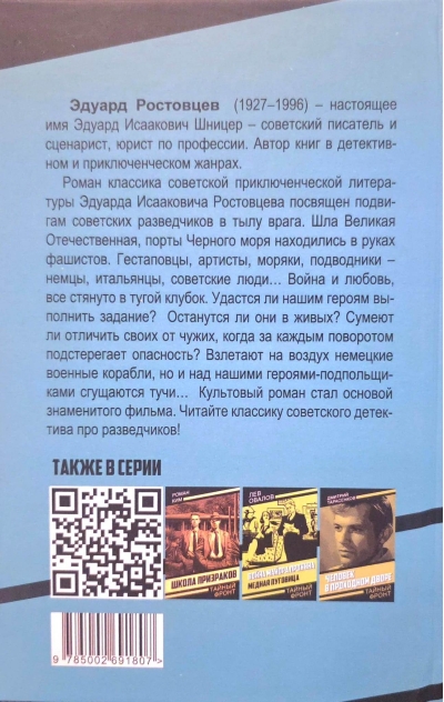 Роман классика советской приключенческой литературы Эдуарда Исааковича Ростовцева посвящен подвигам советских разведчиков в тылу врага. Шла Великая Отечественная, порты Черного моря находились в руках фашистов. Гестаповцы, артисты, моряки, подводники — немцы, итальянцы, советские люди... Война и любовь, все стянуто в тугой клубок. Удастся ли нашим героям выполнить задание? Останутся ли они в живых? Сумеют ли отличить своих от чужих, когда за каждым поворотом подстерегает опасность? Взлетают на воздух немецкие военные корабли, но и над нашими героями-подпольщиками сгущаются тучи... Культовый роман стал основой знаменитого фильма. Читайте классику советского детектива про разведчиков!