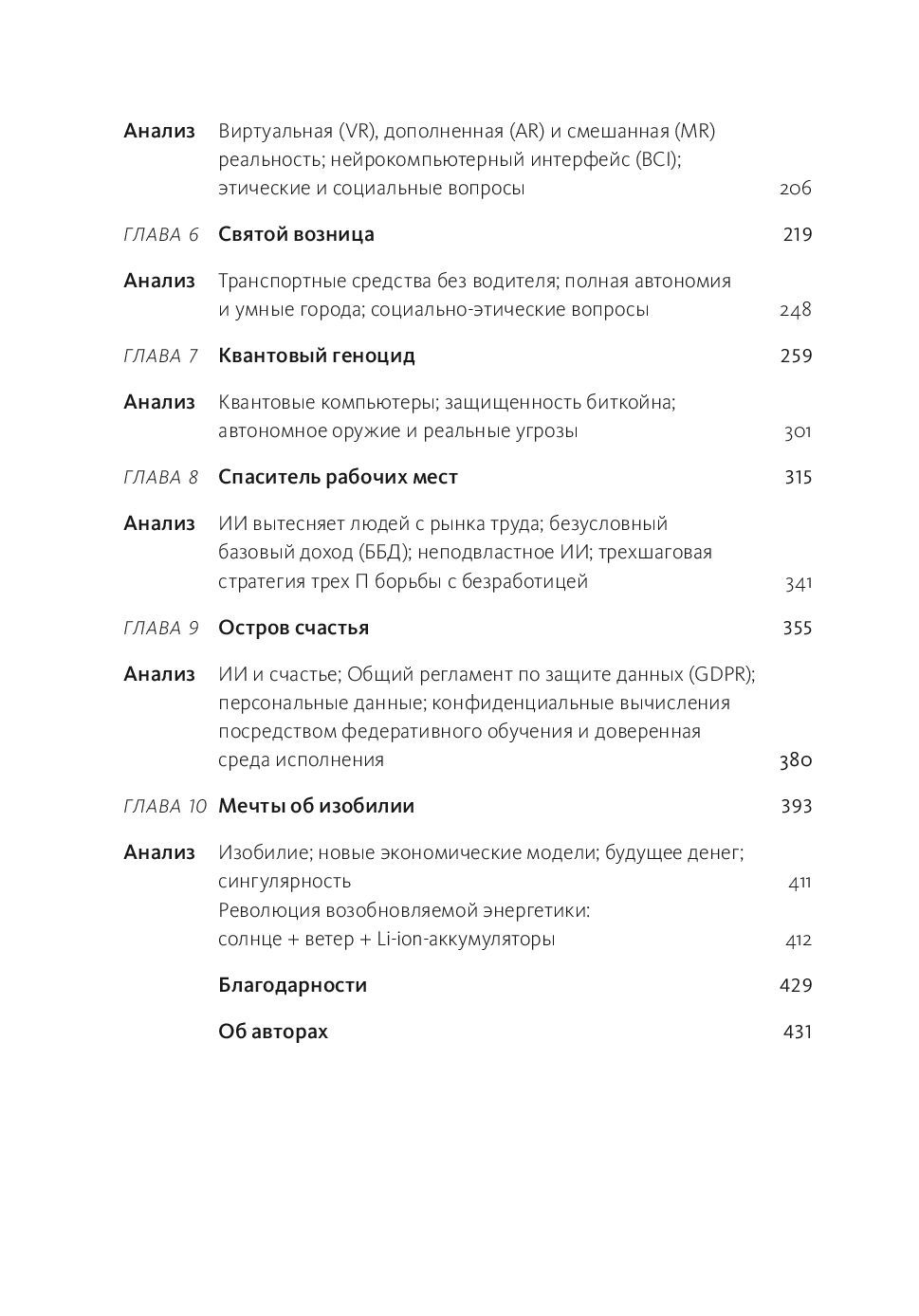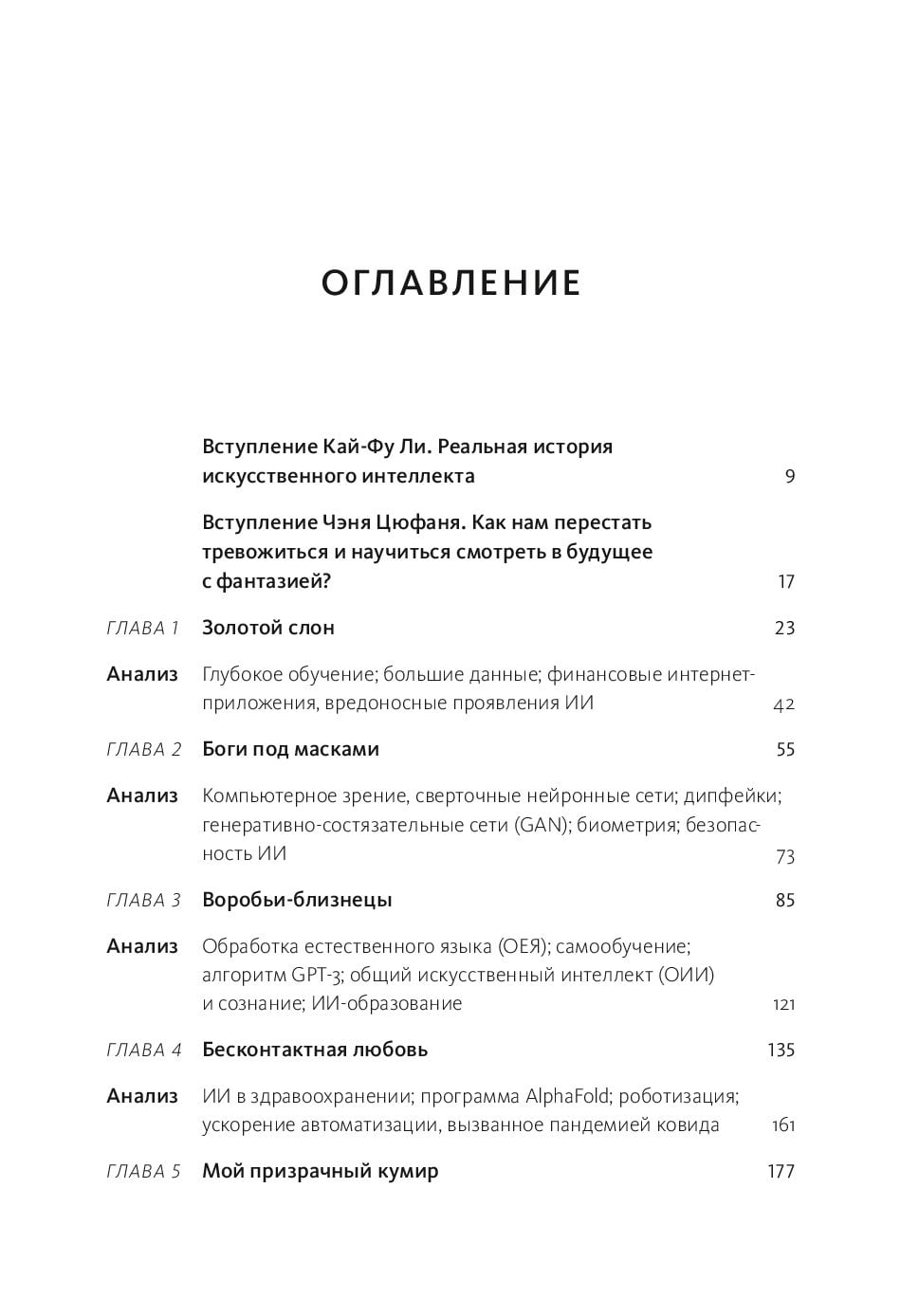 Искусственный интеллект станет определяющим событием XXI века. В течение двух десятилетий все аспекты повседневной жизни станут неузнаваемыми. ИИ приведет к беспрецедентному богатству, симбиоз человека и машины приведет к революции в медицине и образовании и создаст совершенно новые формы общения и развлечений. Однако, освобождая нас от рутинной работы, ИИ также бросит вызов организационным принципам нашего экономического и социального порядка. ИИ принесет новые риски в виде автономного оружия и неоднозначных интеллектуальных технологий. ИИ находится в переломном моменте, и людям необходимо узнать как его положительные черты ИИ, так и экзистенциальные опасности, которые он может принести. В этой провокационной, совершенно оригинальной работе Кай-Фу Ли, бывший президент Google China и автор книги «Сверхдержавы искусственного интеллекта», объединяется со знаменитым романистом Чэнь Цюфанем, чтобы представить наш мир в 2041 году и то, как он будет формироваться с помощью ИИ. В десяти захватывающих рассказах они познакомят читателей с возможными новыми реалиями 2041 года: В Сан-Франциско появляется индустрия «перераспределения рабочих мест», поскольку ИИ с глубоким обучением вызывает массовое перемещение рабочих мест; В Токио меломан погружается в захватывающую форму поклонения знаменитостям, основанную на виртуальной и смешанной реальности; В Мумбаи девочка-подросток бунтует, когда сжатие больших данных ИИ мешает романтике; В Сеуле виртуальные компаньоны с совершенными навыками обработки естественного языка (НЛП) предлагают близнецам-сиротам новые способы общения; В Мюнхене ученый-мошенник использует квантовые вычисления, компьютерное зрение и другие технологии искусственного интеллекта в заговоре мести, который ставит под угрозу весь мир Глядя на не столь отдаленный горизонт, AI 2041 предлагает срочное понимание нашего коллективного будущего, напоминая читателям, что, в конечном счете, человечество остается автором своей судьбы.