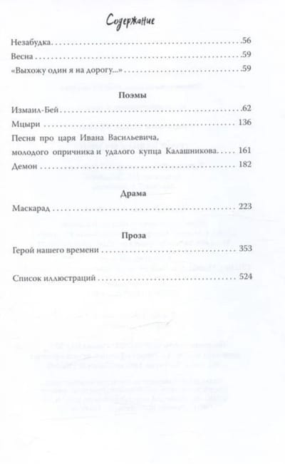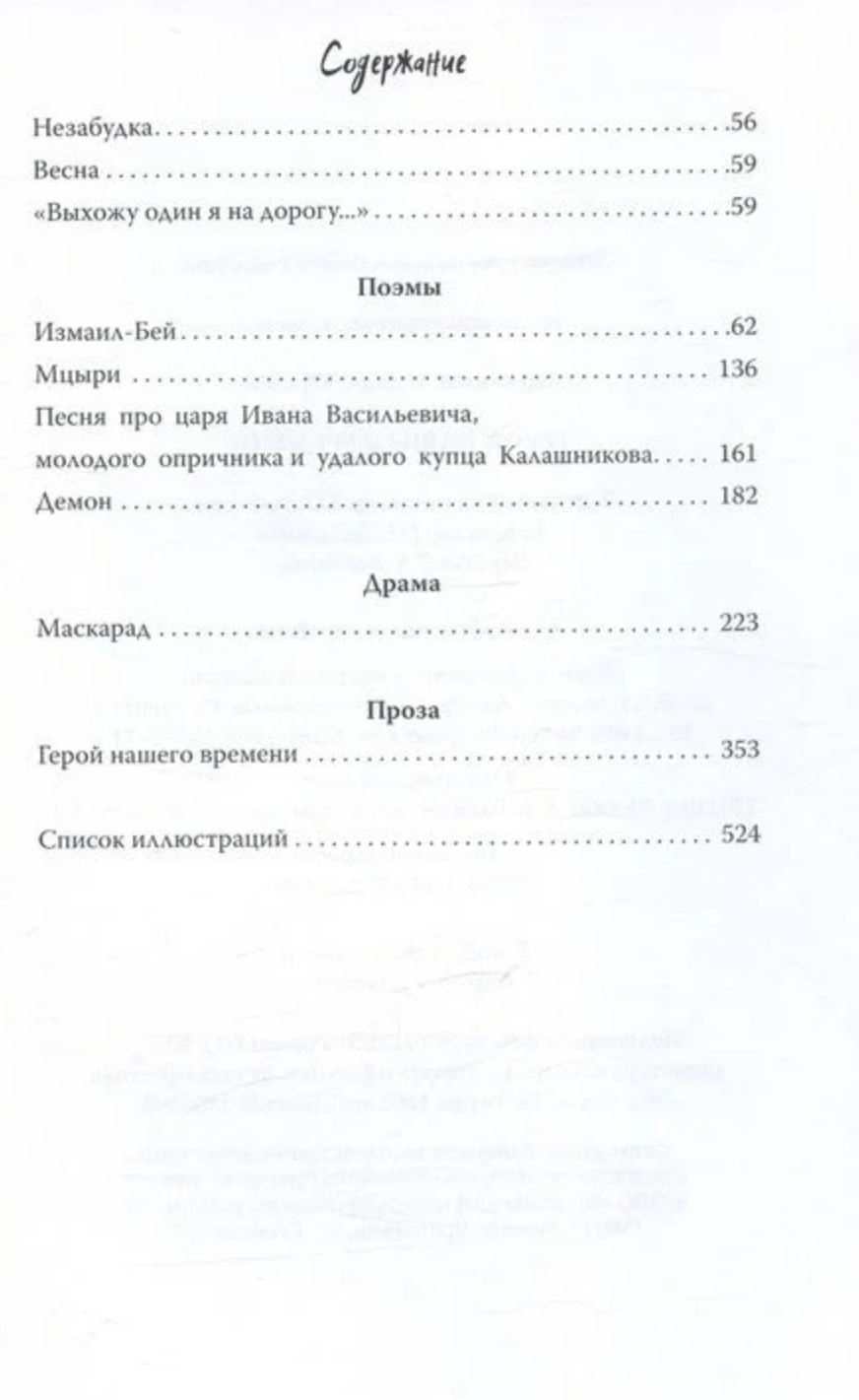 В этот сборник включены избранные произведения автора — стихотворения разных лет, поэмы «Измаил-Бей», «Мцыри», «Песня про… купца Калашникова», «Демон», драма «Маскарад» и роман «Герой нашего времени».