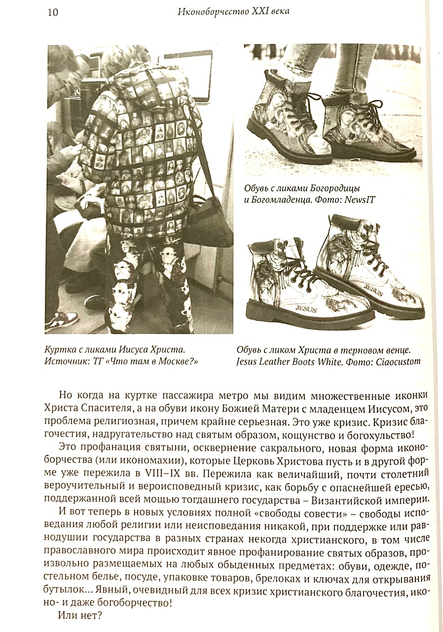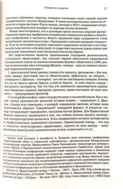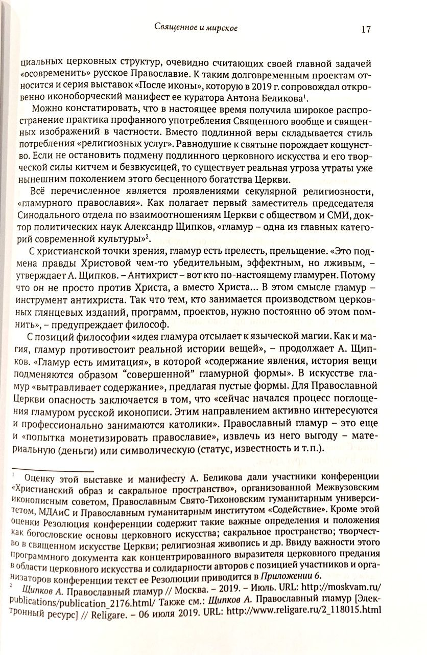 Для Православной Церкви опасность заключается в поглощении иконописи гламуром. Православный гламур - это еще и попытка монетизировать Православие. Противопоставить этому можно только восстановление норм благочестивого обращения со священными изображениями, прежде всего в самой православной среде. Ради этого и написана эта книга.