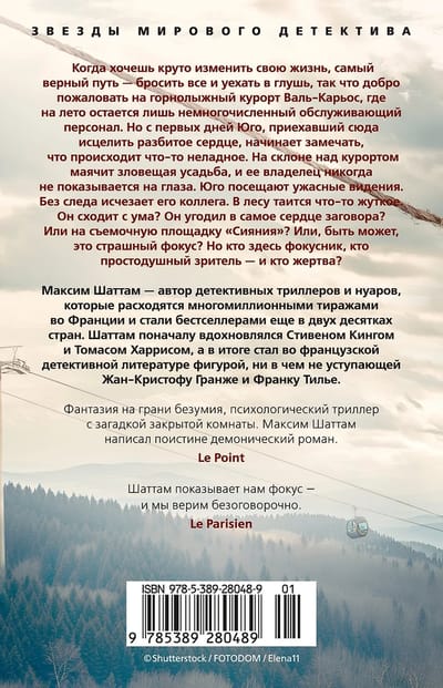 Максим Шаттам — автор детективных триллеров и нуаров, которые расходятся многомиллионными тиражами во Франции и стали бестселлерами еще в двух десятках стран. Шаттам изучал современную литературу и криминологию, поначалу вдохновлялся Стивеном Кингом и Томасом Харрисом, а в итоге стал во французской детективной литературе фигурой, ни в чем не уступающей Жан-Кристофу Гранже и Франку Тилье. Его новый триллер «Иллюзия» постепенно и неотвратимо заводит читателя все дальше в беспросветный лабиринт, где за каждым углом таятся чудовища и все новые ловушки, а выхода к свету, возможно, и вовсе нет.