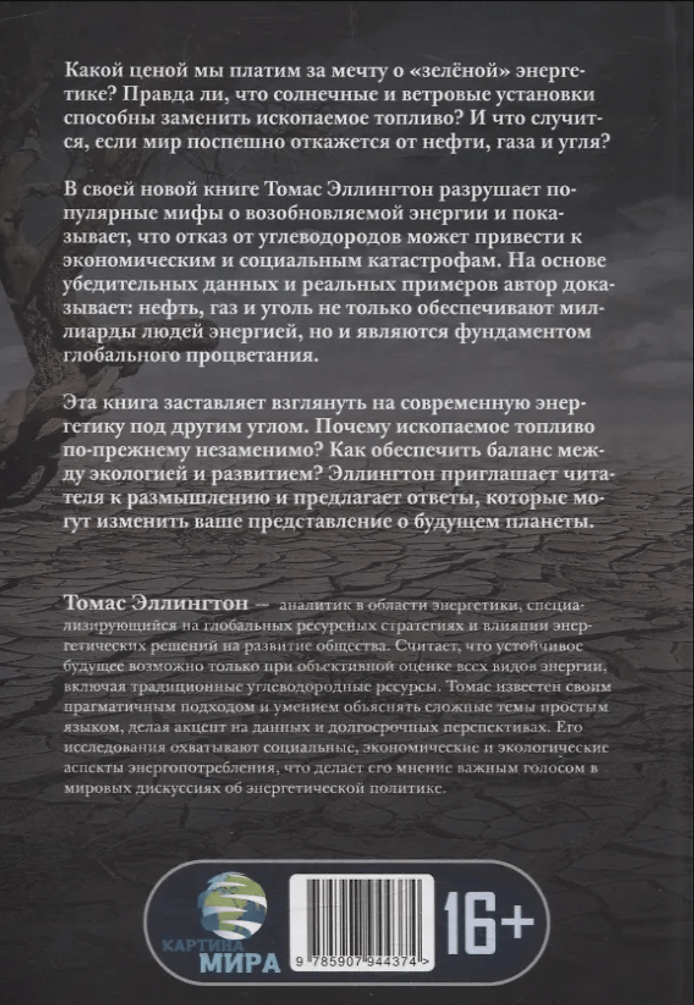 В своей новой книге Томас Эллингтон разрушает популярные мифы о возобновляемой энергии и показывает, что отказ от углеводородов может привести к экономическим и социальным катастрофам. На основе убедительных данных и реальных примеров автор доказывает: нефть, газ и уголь не только обеспечивают миллиарды людей энергией, но и являются фундаментом глобального процветания.