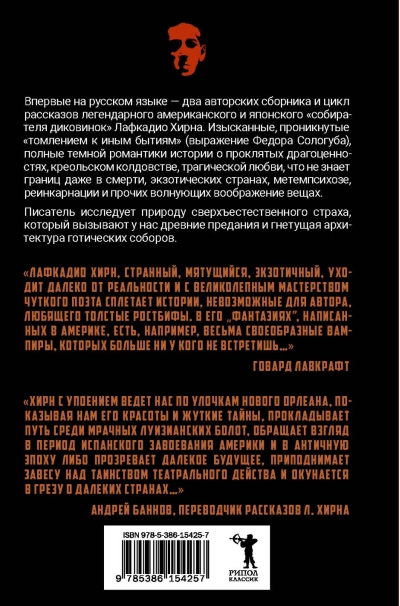 Изысканные, проникнутые «томлением к иным бытиям» (выражение Федора Сологуба), полные темной романтики истории о проклятых драгоценностях, креольском колдовстве, трагической любви, что не знает границ даже в смерти, экзотических странах, метемпсихозе, реинкарнации и прочих волнующих воображение вещах. Писатель исследует природу сверхъестественного страха, который вызывают у нас темные предания и гнетущая архитектура готических соборов.