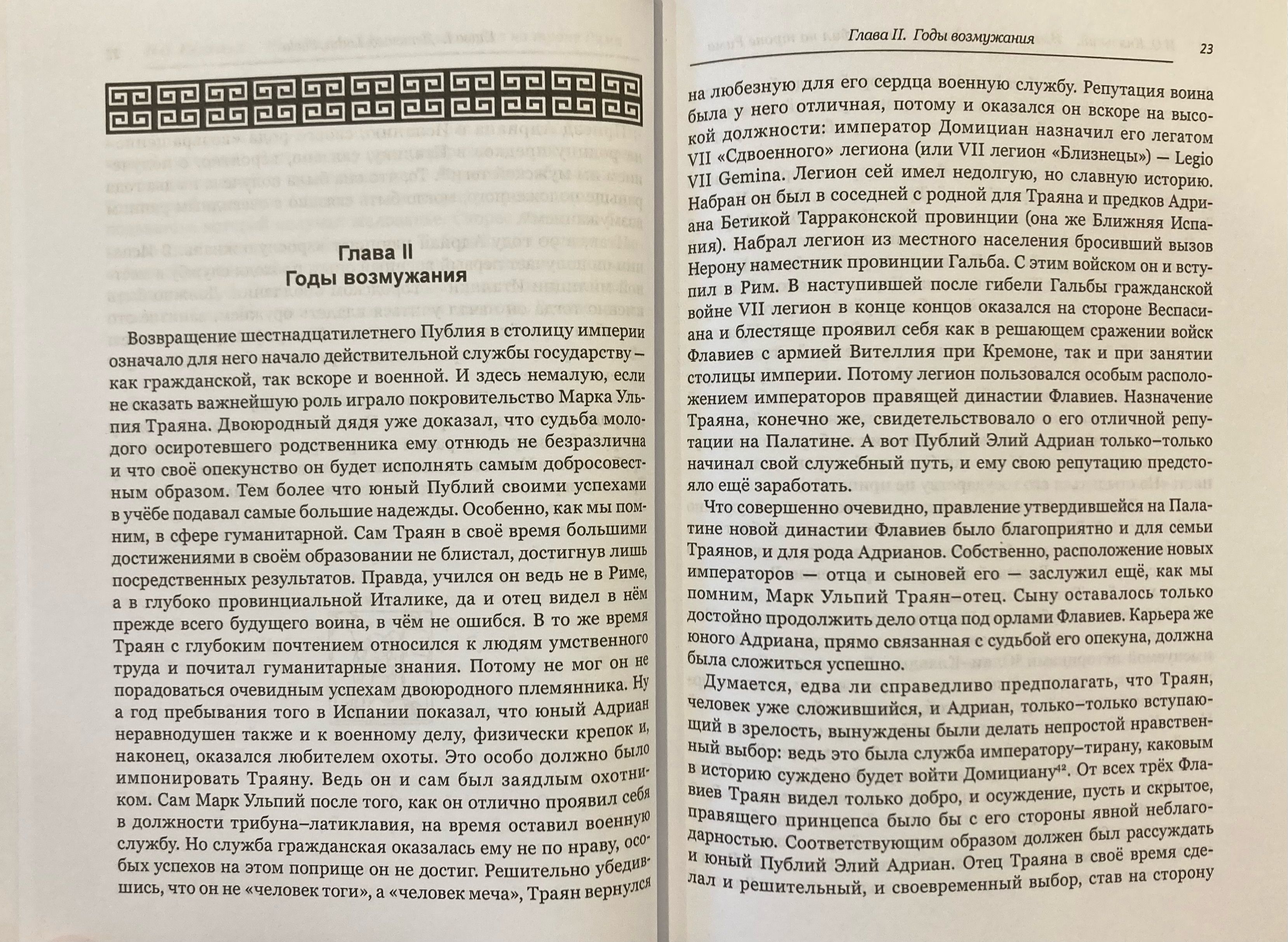 Монография доктора исторических наук профессора И. О. Князького посвящена жизни и правлению римского императора Адриана (117–138 гг.). Блистательный интеллектуал, поклонник и замечательный знаток эллинской культуры, посвящённый в Элевсинские таинства, он в то же время — испытанный военачальник, прошедший обе Дакийские кампании Траяна. Именно Публий Элий Адриан стал преемником этого императора, признанного сенатом римского народа «наилучшим принцепсом». За двадцать один год правления Адриан сумел оставить незаурядное наследие в Римской империи. Отказавшись от завоевательной политики предшественника, этот император укрепил рубежи державы и обеспечил стабильность и благополучие в провинциях. Исключение составила лишь одна из них, где разразилась Третья Иудейская война. Адриан всемерно содействовал культурному подъему жизни Империи. Рим, любимые им Афины и многие другие города были украшены замечательными постройками. Известен Адриан также своим покровительством литераторам и философам. В то же время иной раз он проявлял немалую жестокость, жертвами которой становились видные военачальники, сенаторы. Стоит отметить и такую особенность личности выдающегося правителя: преклоняясь перед эллинской культурой, в делах державных Адриан оставался римлянином до мозга костей. Это и обеспечивало Империи могущество и процветание.