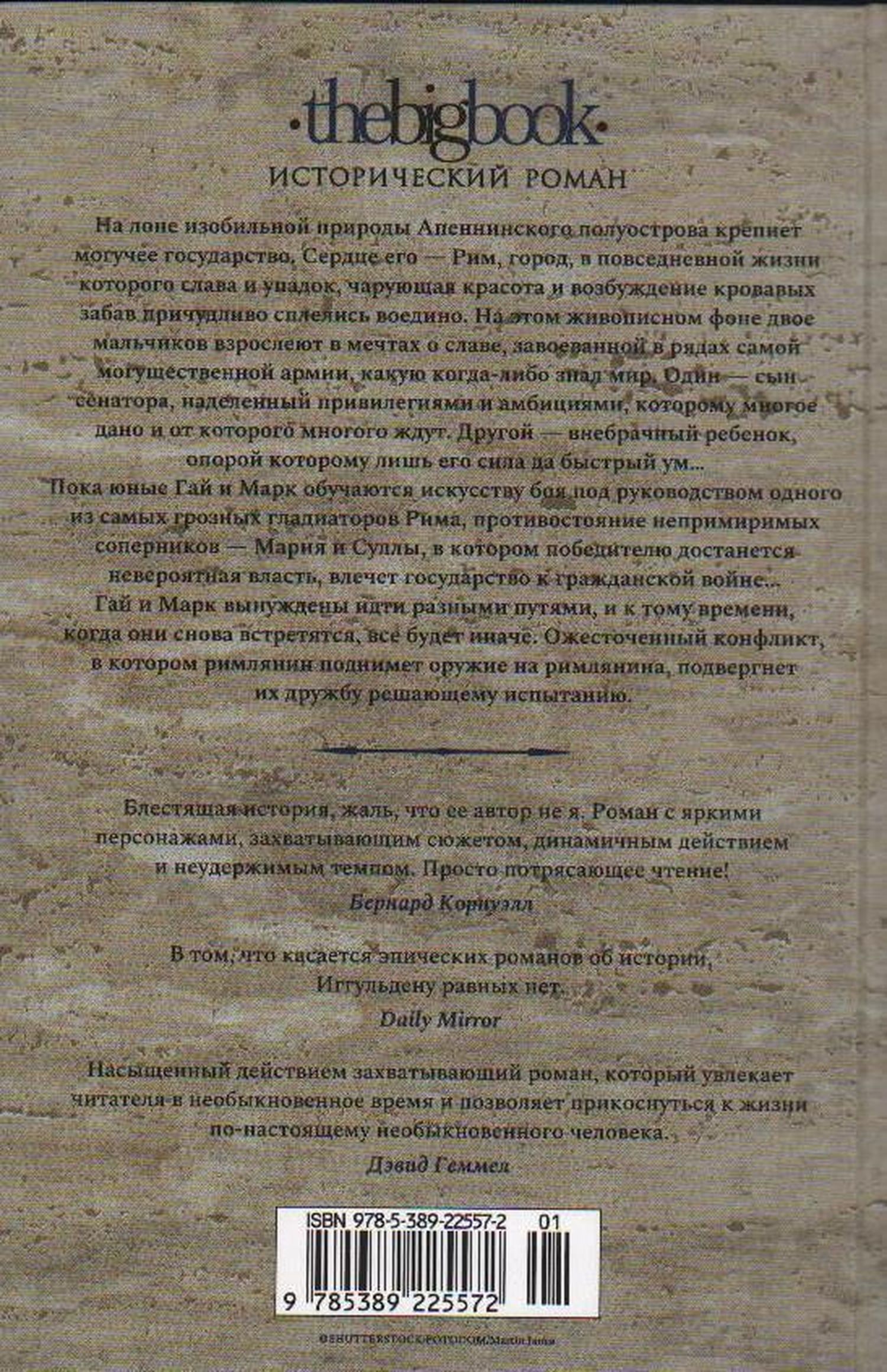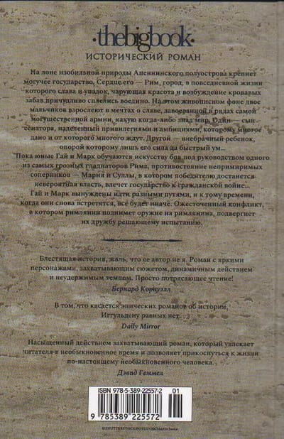На лоне изобильной природы Апеннинского полуострова крепнет могучее государство. Сердце его — Рим, город, в повседневной жизни которого слава и упадок, чарующая красота и возбуждение кровавых забав причудливо сплелись воедино. На этом живописном фоне двое мальчиков взрослеют в мечтах о славе, завоеванной в рядах самой могущественной армии, какую когда-либо знал мир. Один — сын сенатора, наделенный привилегиями и амбициями, которому многое дано и от которого многого ждут. Другой — внебрачный ребенок, опорой которому лишь его сила да быстрый ум… Пока юные Гай и Марк обучаются искусству боя под руководством одного из самых грозных гладиаторов Рима, противостояние непримиримых соперников — Мария и Суллы, в котором победителю достанется невероятная власть, влечет государство к гражданской войне... Гай и Марк вынуждены идти разными путями, и к тому времени, когда они снова встретятся, все будет иначе. Ожесточенный конфликт, в котором римлянин поднимет оружие на римлянина, подвергнет их дружбу решающему испытанию.