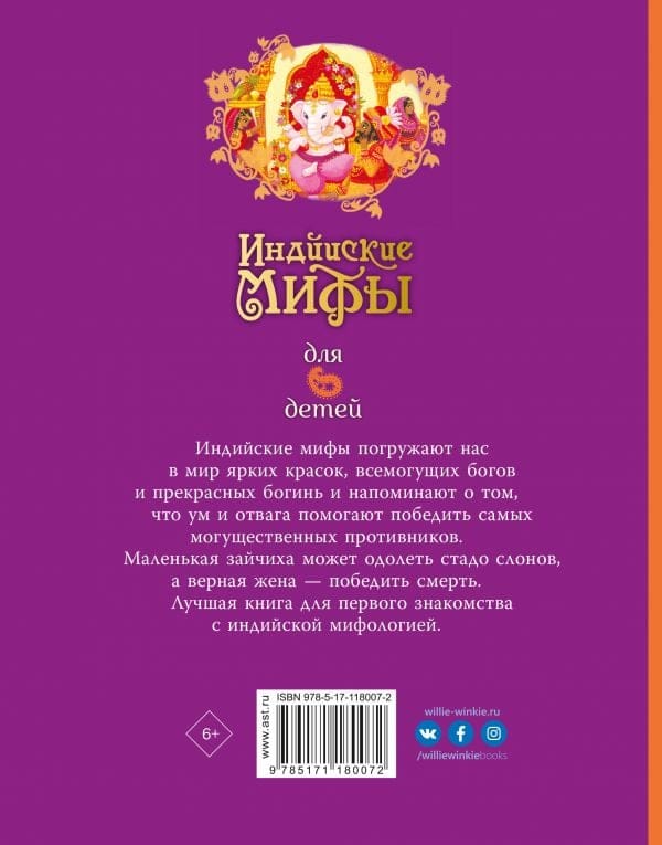 Индийские мифы каждый раз погружают нас в мир ярких красок, всемогущих богов и прекрасных богинь и напоминают о том, что ум и отвага помогают победить даже самых сильных и могущественных противников. Маленькая зайчиха может одолеть стадо слонов, а верная жена — победить смерть. «Индийские мифы для детей» — это лучшая книга для первого знакомства с удивительной и завораживающей индийской мифологии.