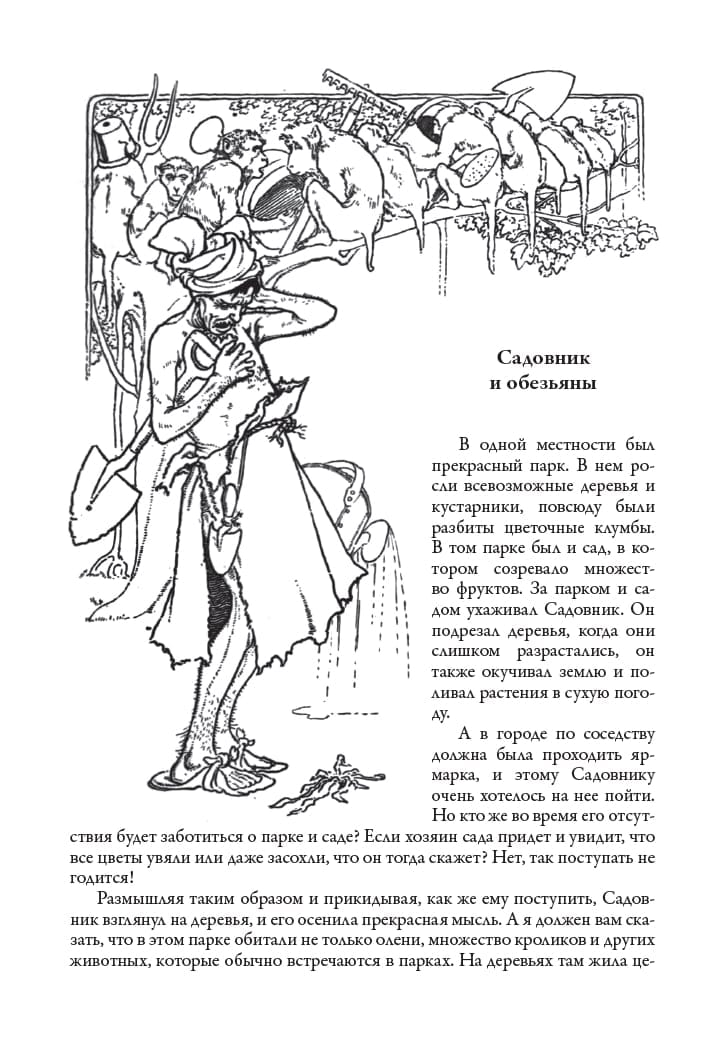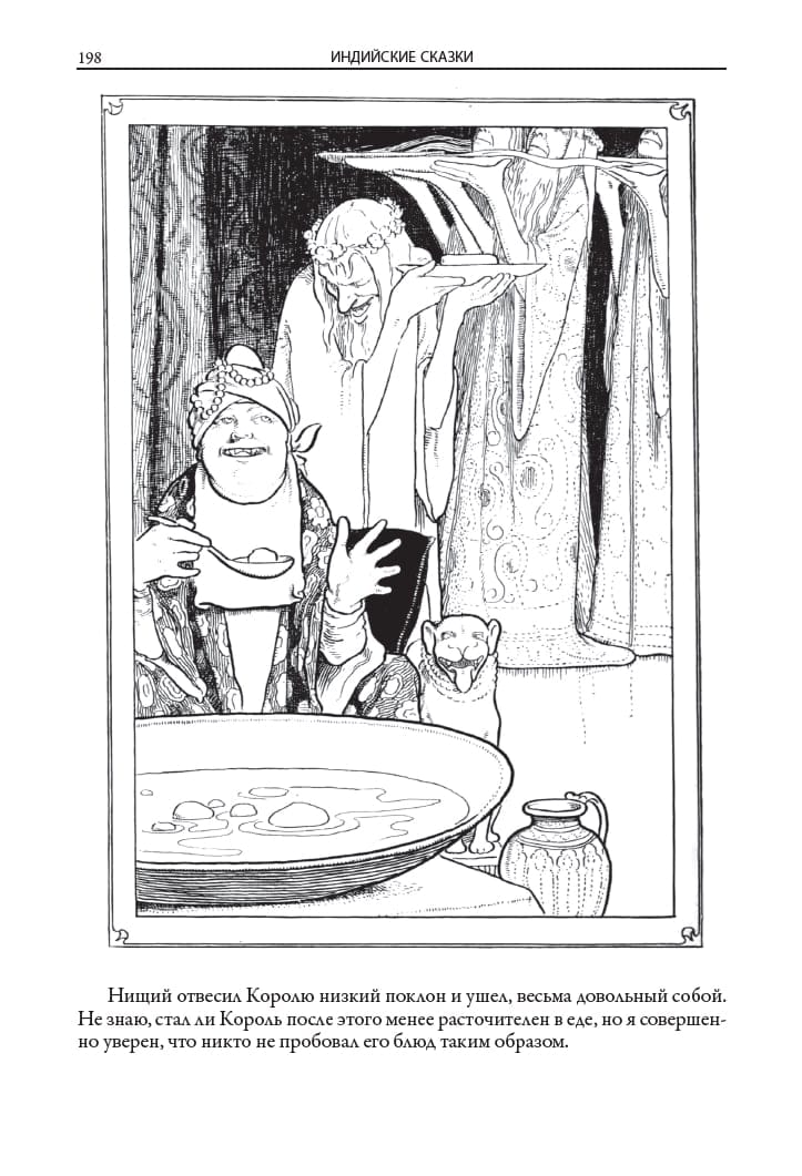 Сборник включает семьдесят одну народную индийскую сказку. Все они были собраны в конце XIX века английским этнографом Уильямом Круком в ходе исследований северных и северо-западных провинций Индии. Некоторые из них он записывал сам, другие переводить со слов местных жителей ему помогал индиец Пандит Рамгариб Чаубе. Все тексты даны в переводе С. Ю. Афонькина. Издание украшают иллюстрации английского художника Уильяма Робинсона. Наслаждаться самобытными индийскими сказками, опубликованными в этой книге, мы можем благодаря английскому востоковеду Уильяму Круку (1848-1923), который был одним из ведущих специалистов по индийскому фольклору. Крук окончил колледж Святой Троицы в Дублине, а потом четверть века занимал административную должность в оккупированной британцами Индии. Он много писал о6 индийцах, их религии, верованиях и обычаях. Прекрасно понимая, как много в жизни каждого народа значит его фольклор, Крук начал записывать индийские сказки. Нередко в этом деле ему помогал индиец Пандит Рамгариб Чаубе, окончивший Президентский колледж в Калькутте. Сказок, изложенных Круком на английском, набралось более семи десятков; они были изданы в Великобритании отдельной книгой. Уильям вернулся в Англию в 1910 году и через под был избран президентом Фольклорного общества, членом которого он был на протяжении долгого времени. Эту почетную должность У. Крук занимал до конца своей жизни. Издание украшают рисунки Уильяма Хита Робинсона (1872-1944). Сама судьба уготовила ему стать прекрасным рисовальщиком, ведь его дед, отец и даже родной дядя были художниками. Старшие братья Уильяма - Томас и Ричард - стали со временем иллюстраторами. Уильяма с раннего детства окружала творческая атмосфера; он рос среди красок, картин, книг о6 искусстве. Неудивительно, что он рано взялся за карандаши и перья. В самом начале ХХ века Уильям Робинсон уже был известен своими карикатурами, а также иллюстрациями к сказкам Андерсена, произведениям Уильяма Шекспира и Франсуа Рабле. Иллюстрации к индийским сказкам в этой книге говорят о его любви к стилю ар-деко. Однако была у Робинсона-младшего и еще одна любовь. Он обожал придумывать и изображать совершенно несуразные механизмы вроде «автоматизированного глушителя для обливания водой голосящих котов» или «кресла для удаления бородавок на макушке». Эти конструкции на его рисунках, нередко приводившиеся в движение своеобразными «паровыми котлами» - чайниками, нагреваемыми свечами или спиртовками - были настолько своеобразны, что вошли в английский лексикон. До сих пор про любую сложную и не совсем понятную механическую конструкцию британцы могут сказать, что это «машина Робинсона». В частности, так стали именовать один из английских автоматических приборов для дешифровки перехваченных немецких сообщений во время Второй мировой войны.