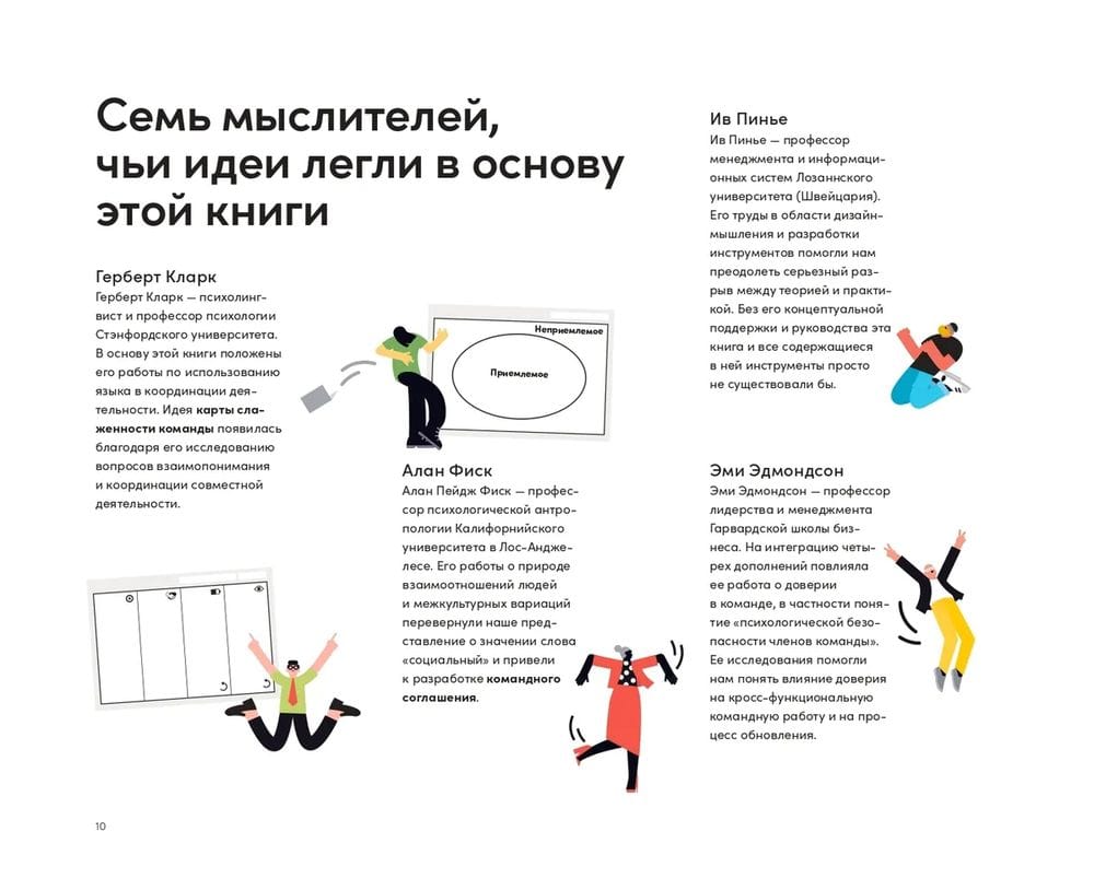 В пятой книге серии Strategyzer теоретик бизнеса Алекс Остервальдер и его соавтор Стефано Мастроджакомо рассказывают об инструментах эффективной командной работы. Это книга для тех, кто только готовится стать лидером или уже возглавляет рабочую группу, отдел, департамент и даже целую компанию. В ее основу легли идеи семи выдающихся современных мыслителей, психологов, антропологов и специалистов по управлению — Стивена Пинкера, Ива Пинье, Эми Эдмондсон и других. Приемы, о которых рассказывают Остервальдер и Мастроджакомо, помогут сделать команду любого размера слаженной, создать и поддерживать атмосферу доверия и психологической безопасности. Вы научитесь грамотно распределять нагрузку, конструктивно разрешать конфликты и развивать компетенции всей команды и каждого ее члена.