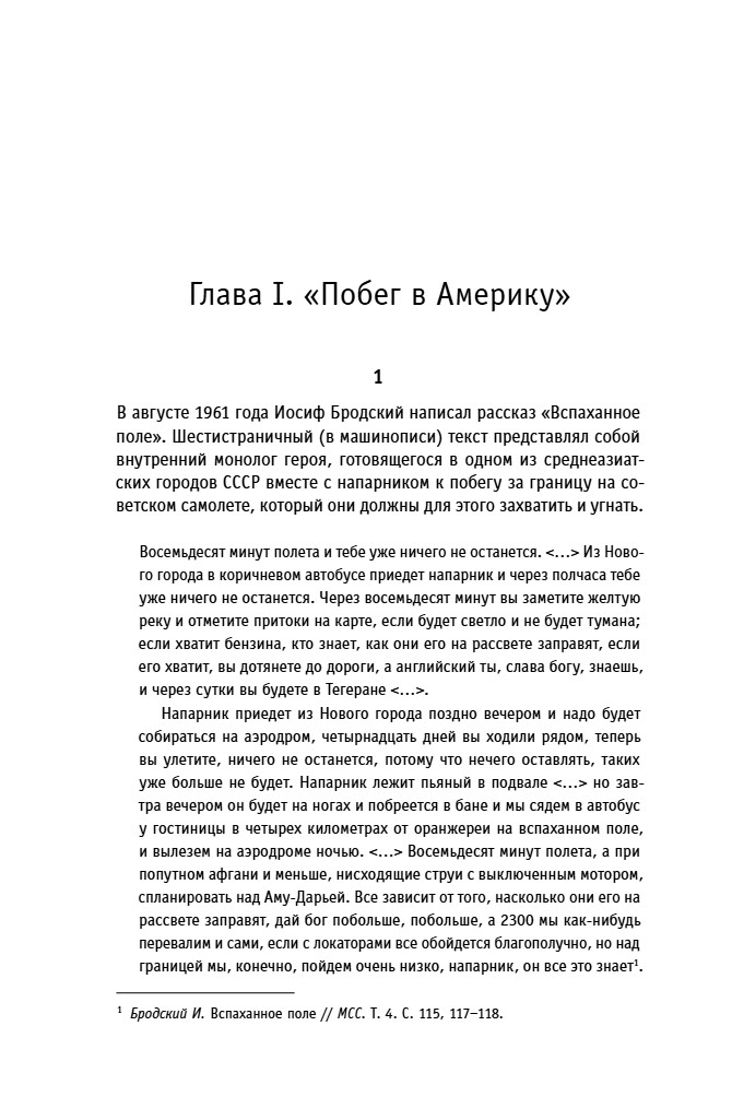Выезд из СССР в 1972 году разделил жизнь и литературную биографию Иосифа Бродского на две автономные части. Книга Глеба Морева посвящена советскому периоду, на который пришлось становление литературной карьеры, формирование социокультурной позиции и этических установок поэта. В центре книги оказываются несколько сюжетов — от замысла побега из СССР на самолете или знаменитого суда за тунеядство до ссылки в Архангельскую область и выезда за границу.