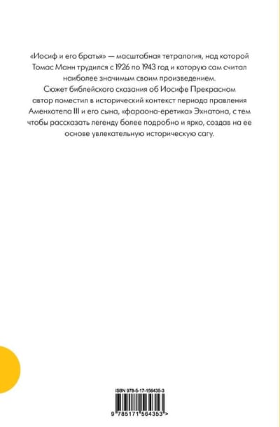 «Иосиф и его братья» — масштабная тетралогия, над которой Томас Манн трудился с 1926 по 1942 год и которую сам считал наиболее значимым своим произведением.
