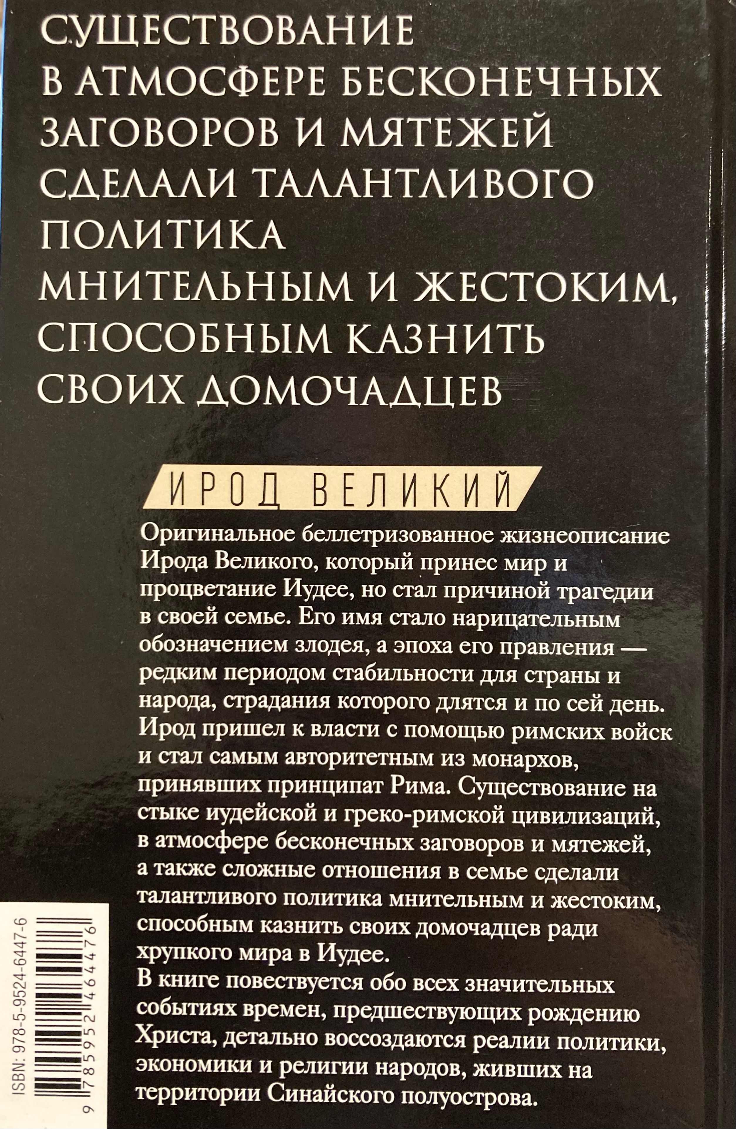 Автор предлагает оригинальную версию жизни Ирода Великого, развенчивает миф об избиении младенцев, используя свидетельства великих историков древности, и детально воссоздает реалии политики, экономики и тонкости верований народов, живших на территории Синайского полуострова.