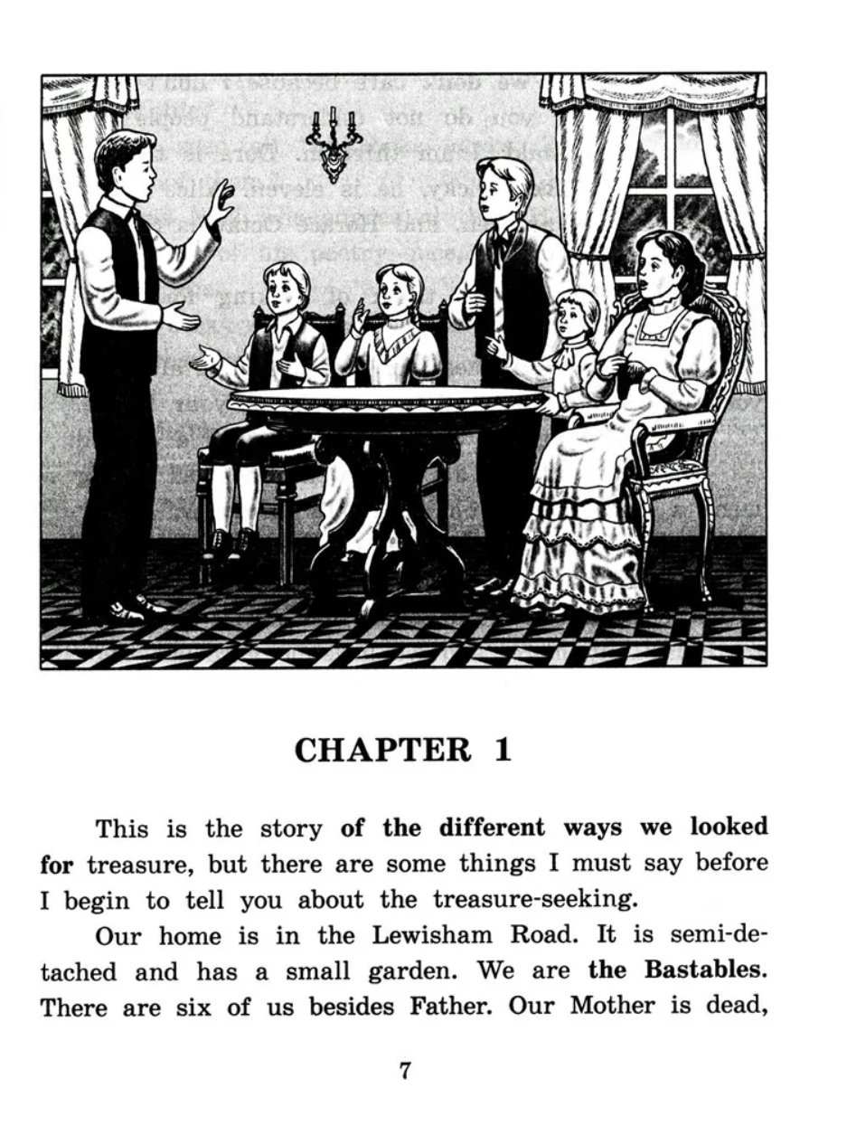 Книга представляет собой адаптацию увлекательного романа знаменитой английской детской писательницы Эдит Несбит «Искатели сокровищ», который принёс ей блистательный литературный успех.