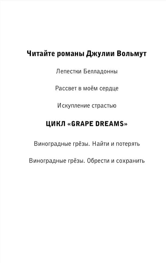 Книги Джулии Вольмут — это истории любви, в которых эмоции искрят будто оголенные нервы. Сквозь боль, непонимание и страхи герои двигаются вперед в надежде получить то, чего хотят, или то, чего думают, что хотят. А мы наблюдаем за ними то с замирающим, то с ускоряющимся пульсом и глотаем страницу за страницей, гадая: куда заведет их судьба? Их истории — это истории падения или взлета?