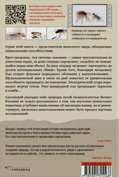 Герои этой книги — некоторые из самых удивительных созданий природы, обладающих совершенно невероятными способностями. Биолог-исследователь Кеннет Катания рассказывает, для чего у крота‑звездоноса странные отростки вокруг носа, как щупальценосная змея, прибегая к коварству, заставляет рыб заплывать прямо ей в пасть, как электрический угорь «дистанционно управляет» другими животными, как изумрудные осы зомбируют тараканов, раскрывает тайну «заклинания червей», которым дождевых червей выманивают из почвы…