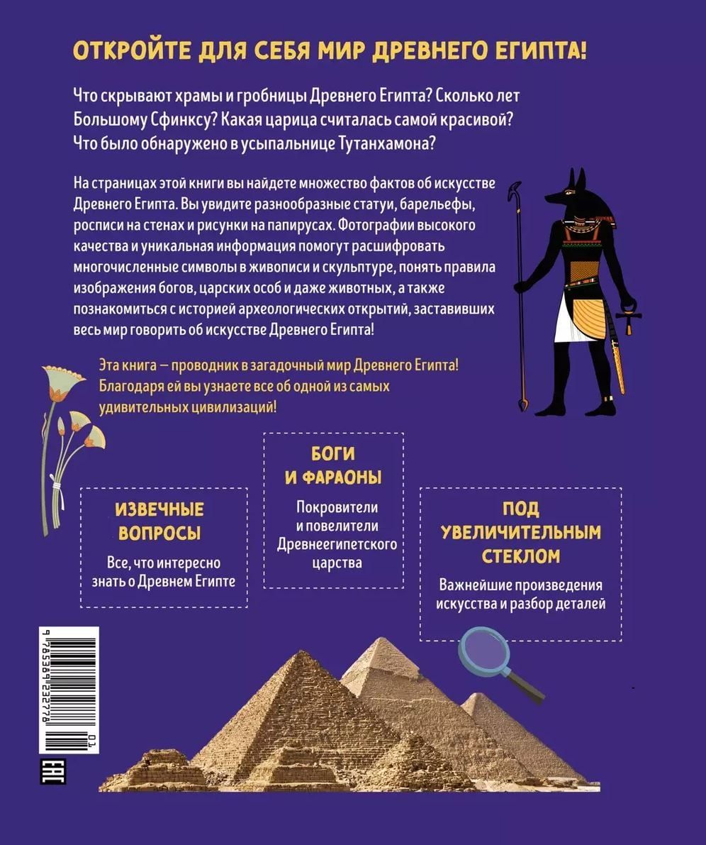 Что скрывают храмы и гробницы Древнего Египта? Сколько лет Большому Сфинксу? Какая царица считалась самой красивой? Что было обнаружено в усыпальнице Тутанхамона? На страницах этой книги вы найдете множество фактов об искусстве Древнего Египта. Вы увидите разнообразные статуи, барельефы, росписи на стенах и рисунки на папирусах. Фотографии высокого качества и уникальная информация помогут расшифровать многочисленные символы в живописи и скульптуре, понять правила изображения богов, царских особ и даже животных, а также познакомиться с историей археологических открытий, заставивших весь мир говорить об искусстве Древнего Египта.