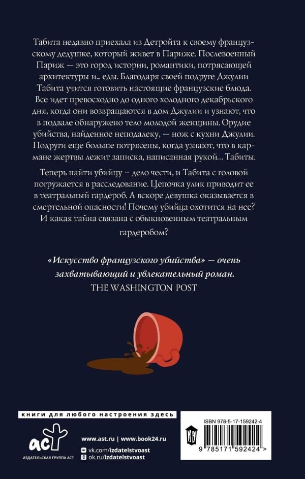 Табита недавно приехала из Детройта к своему французскому дедушке, который живет в Париже. Послевоенный Париж — это город истории, романтики, потрясающей архитектуры и. . . еды. Благодаря своей подруге Джулии Табита учится готовить настоящие французские блюда. Все идет превосходно до одного холодного декабрьского дня, когда они возвращаются в дом Джулии и узнают, что в подвале обнаружено тело молодой женщины. Орудие убийства, найденное неподалеку, — нож с кухни Джулии. Подруги еще больше потрясены, когда узнают, что в кармане жертвы лежит записка, написанная рукой… Табиты.