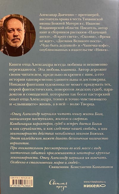 Никакая фантазия художника не может придумать тех, порой фантастических, поворотов людских судеб, парадоксов и совпадений, которыми так богат пасторский опыт отца Александра, тонко и точно чувствующего и «слышащего» жизнь, а в ней — волю Творца.