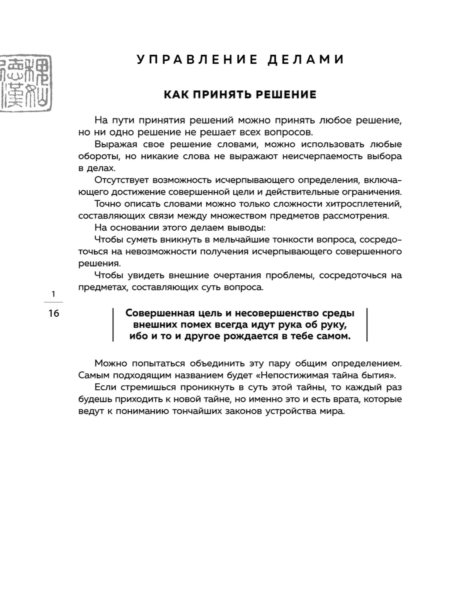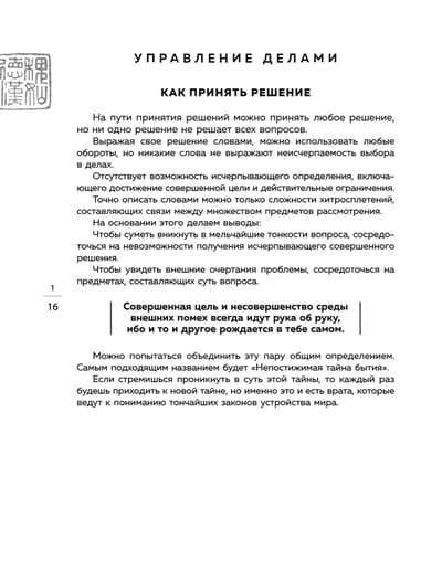 Новое издание книги известного эксперта по Китаю, писателя, художника и переводчика Бронислава Виногродского посвящена структуре управления, а именно получению предсказуемых плодов воздействия на три стороны реальности: на дела, обстоятельства и состояния. Парадоксы здесь соседствуют с ясными указаниями, а глубокая мудрость — с поэтическими образами.