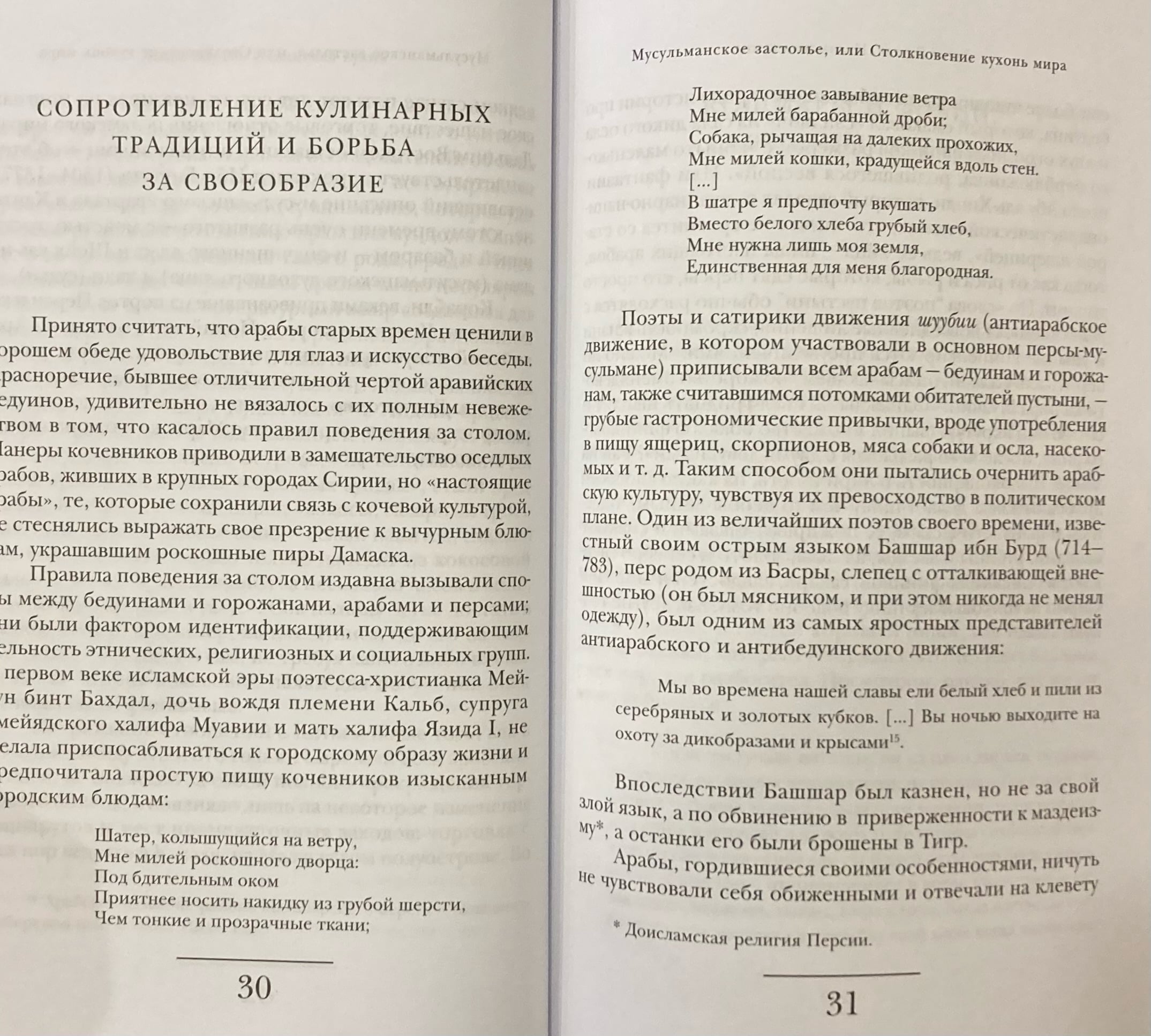 В этой книге рассказывается, как создавалась гастрономическая культура исламского мира, объединившая самые разнообразные традиции — древнегреческую и персидскую, древнеримскую и китайскую, индийскую и африканскую… Речь идет о культуре мусульманских праздников (прежде всего, Рамадана) и «путешествии вкусов» из Багдада в Кордову и из Туниса в Палермо; о любимом блюде пророка Мухаммеда и о том, можно ли во время трапезы пить пальмовое вино; о кухне кочевников аравийских пустынь и гурманов садов Андалусии; кухне утонченной и кухне грубой; кухне стран Магриба и кухне «Тысячи и одной ночи»… История кухни здесь становится не только увлекательным рассказом, но и подробным комментарием к рецептам, составившим едва ли не основное содержание книги, помогает ближе познакомиться с культурой исламского мира.