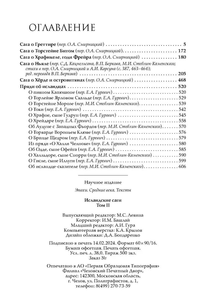 Составление книги, объединившей едва ли не все самые известные «саги об исландцах», и общая подготовка издания были выполнены О.А. Смирницкой. Книга рассчитана как на специалистов-скандинавистов, так и на широкий круг читателей.