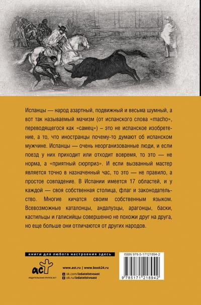 Испанцы — народ азартный, подвижный и весьма шумный, а вот так называемый "мачизм" (от испанского слова "macho", переводящегося как "самец") – это не испанское изобретение, а то, что иностранцы почему-то думают об испанском мужчине. Испанцы — очень неорганизованные люди, и если поезд у них приходит или отходит вовремя, то это — не норма, а "приятный сюрприз". И если вызванный мастер является точно в назначенный час, то это — не правило,
