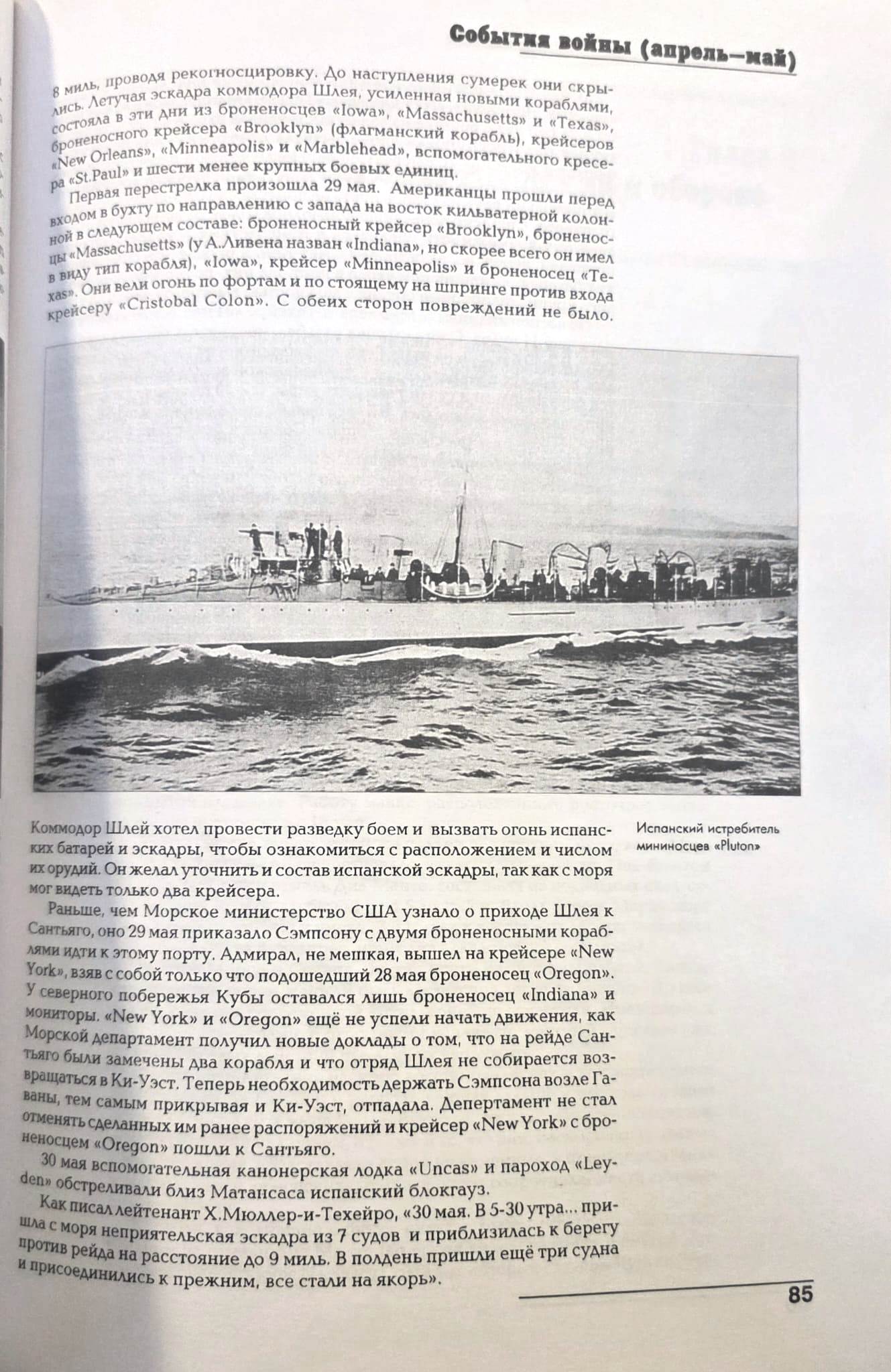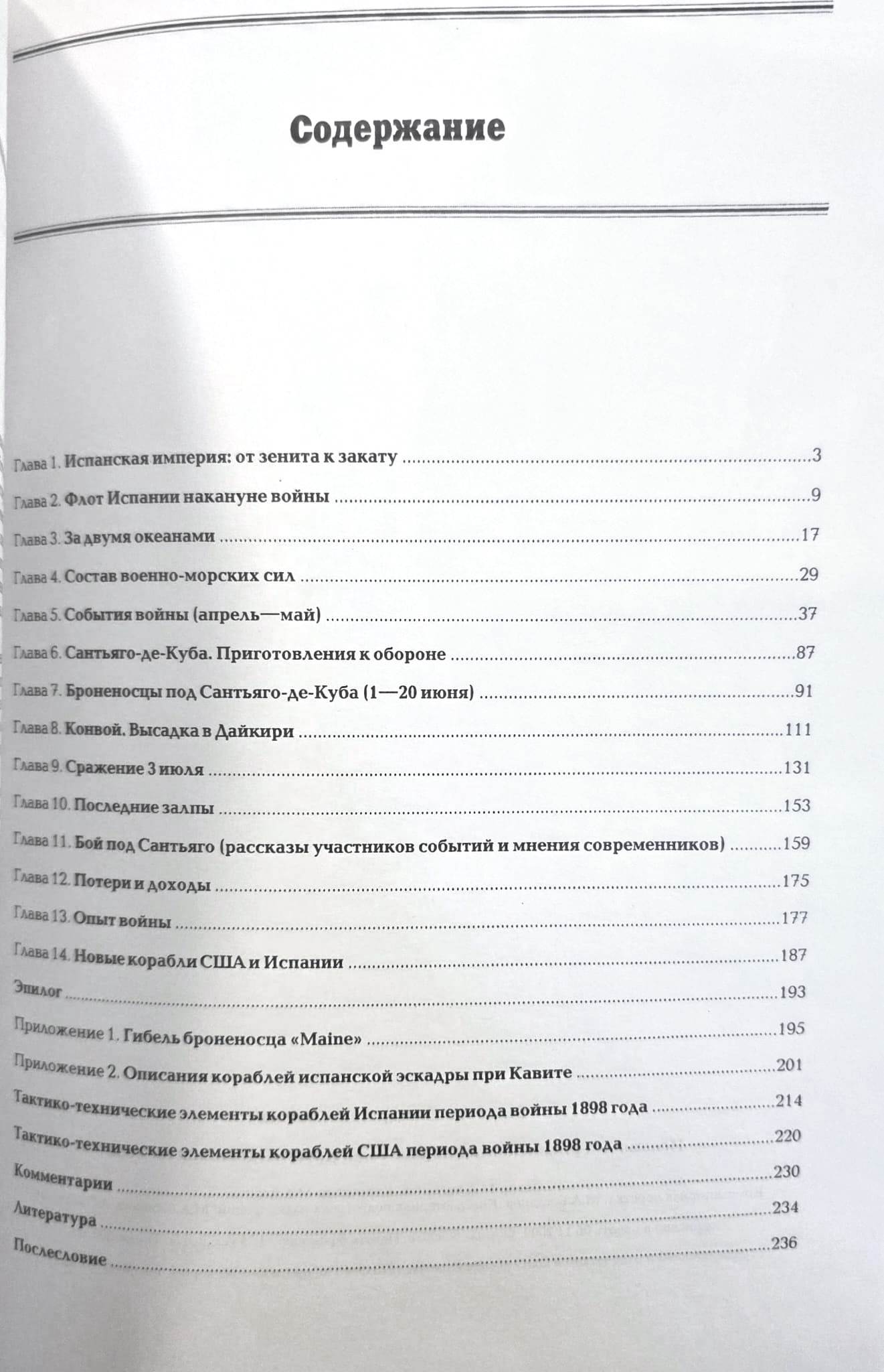 Подробно рассмотрены предпосылки начала войны, дана ежедневная хроника боевых действий на море и основных событий - на сухопутном фронте. Значительное внимание уделено основному морскому сражению войны - бою у Сантьяго-де-Куба 3 июля 1898 года эскадр адмиралов Серверы и Сэмпсона.