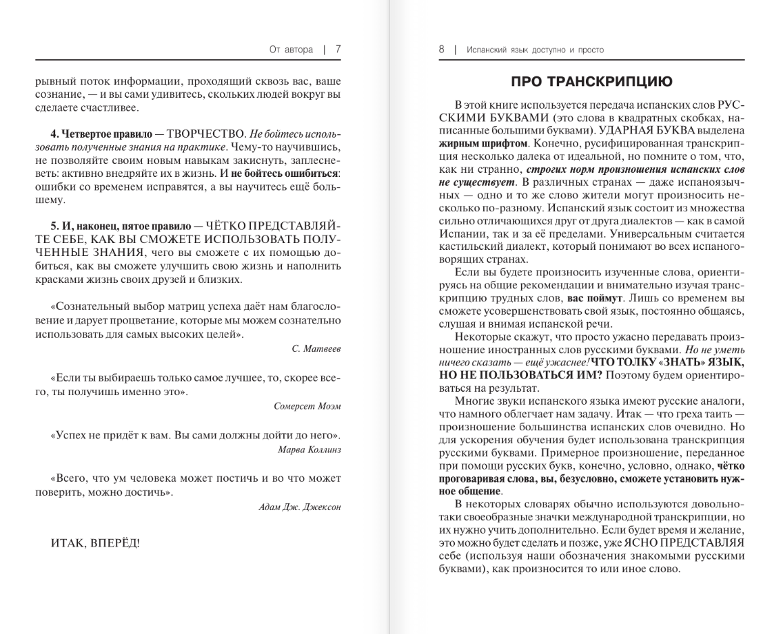 В данном самоучителе представлена революционная методика обучения иностранному языку. Автор доступно объясняет правила и особенности испанского языка. Использован особый способ подачи материала, который учитывает психологические особенности освоения иностранного языка и активизирует различные виды памяти.