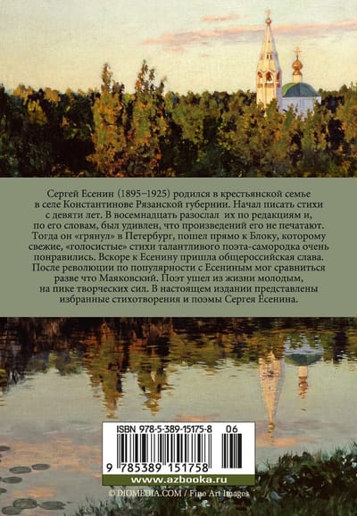 Сергей Есенин (1895–1925) родился в крестьянской семье в селе Константинове Рязанской губернии. Начал писать стихи с девяти лет. В восемнадцать разослал их по редакциям и, по его словам, был удивлен, что произведений его не печатают. Тогда он "грянул" в Петербург, пошел прямо к Блоку, которому свежие, "голосистые" стихи талантливого поэта-самородка очень понравились. Вскоре к Есенину пришла общероссийская слава. После революции по популярности с Есениным мог сравниться разве что Маяковский, тем не менее "последний поэт деревни" чувствовал себя чужим в стране советов. Он ушел из жизни молодым, на пике творческих сил. Обстоятельства трагической судьбы Есенина уже невозможно отделить от мифов, но его проникновенная лирика по-прежнему трогает своей исповедальной искренностью и чистотой. В настоящем издании представлены избранные стихотворения и поэмы Сергея Есенина.