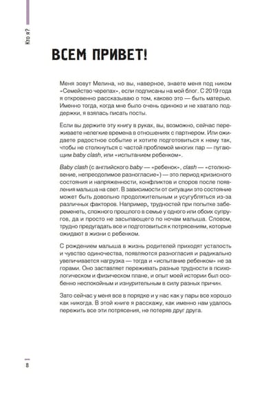 Решив завести ребенка, будущие родители с нетерпением ожидают рождения своего первенца. Они предвкушают радость от встречи с новым членом семьи, представляют себе смех малыша в ответ на гримасы отца и первое «мама», слетающее с уст крохи… но на практике все зачастую оказывается не так радужно. Возможные проблемы при зачатии, девять месяцев плохого самочувствия одного партнера и растущей отстраненности другого, болезненные роды, утруднившееся материальное положение или плотный рабочий график – все эти вещи вместе или по отдельности могут привести вас к ситуации, когда за заботой о ребенке вы потеряете друг друга. По статистике, каждая пятая пара расстанется еще до того, как их малышу исполнится три года. Но как этого избежать? Как вернуть гармонию в отношения, когда мир, кажется, разваливается на части?