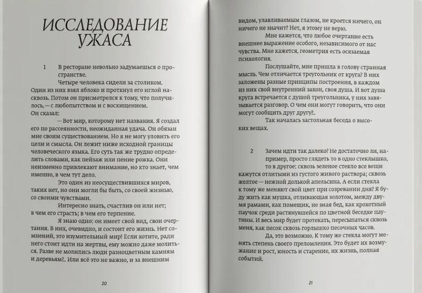 Полное собрание выявленных на сегодня сочинений Леонида Липавского (1904–1941) — писателя, философа, участника кружка «чинарей» и ОБЭРИУ, друга и собеседника Даниила Хармса и Александра Введенского — включает в себя поэтические исследования, записи снов, фрагменты дневников и трактаты. Страстный классификатор, Липавский категоризировал типы любви, интересовался сущностью языковых процессов, предполагая, что они ведут «самостоятельную жизнь», пытался «объяснить видимую картину мира», познать мир «неизвестный», а также определить виды страха и ужаса. «Ужасное» у Липавского — это неотъемлемый, объективный, изначальный признак предмета, его вызывает всё, связанное с потерей человеком индивидуальности. Те же темы находят отражение и в дискуссиях «чинарей» и обэриутов, озаглавленных как «Разговоры»; в полилогах Липавского, Друскина, Заболоцкого, Введенского и Хармса прослеживаются истоки концепций, которые позже лягут в основу работ каждого из них. Тексты Липавского вненаучны; они строятся на теории относительности Эйнштейна, созвучны трудам Фрейда, Бергсона, Шпенглера, Хайдеггера, основаны на философских и естественнонаучных концепциях, занимавших автора всю жизнь.