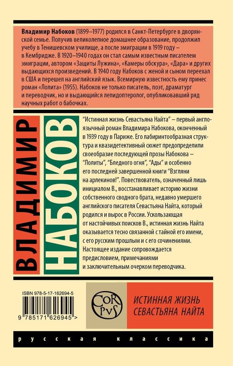 «Истинная жизнь Севастьяна Найта» — первый англоязычный роман Владимира Набокова, оконченный в 1939 году в Париже и два года спустя опубликованный в США. Его лабиринтообразная структура и квазидетективный сюжет предопределили своеобразие последующей прозы Набокова — «Лолиты», «Бледного огня», «Ады» и особенно его последней завершенной книги «Взгляни на арлекинов!». Повествователь, означенный лишь инициалом В., восстанавливает историю жизни собственного сводного брата, покойного писателя Севастьяна Найта (Sebastian Knight), используя воспоминания, устные рассказы и отрывки из его книг. Ускользающая от настойчивых поисков В., истинная жизнь Найта оказывается непосредственно связанной с тайной его имени, с его сочинениями, с законами словесного искусства и с метафизикой Набокова.