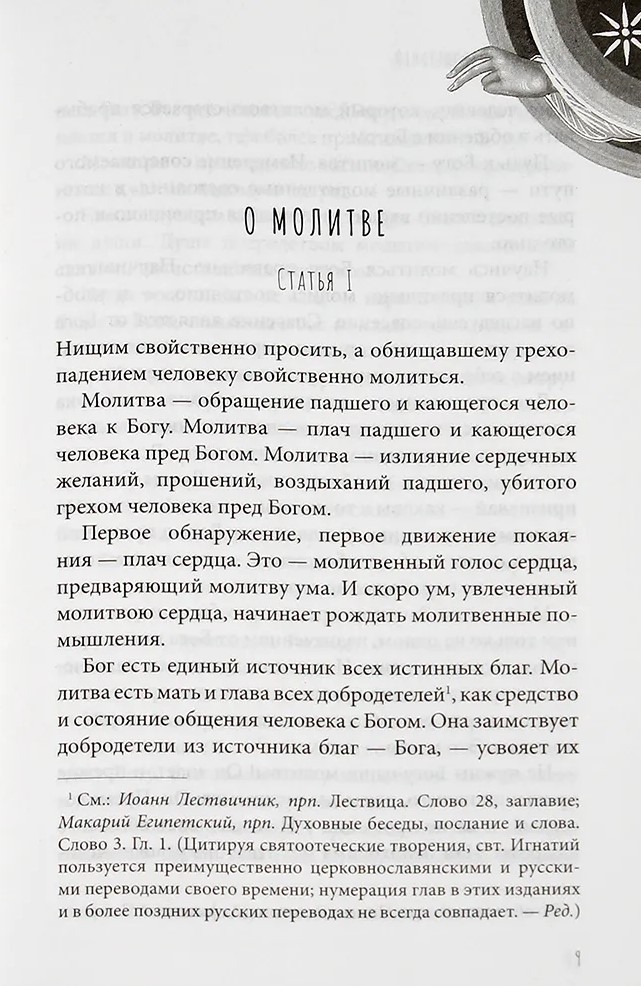 В сборник вошли наиболее значимые статьи святителя Игнатия (Брянчанинова) о молитве келейной (домашней) и церковной, собранные из 1, 2, 4 и 5-го томов его сочинений. В предложенных читателю творениях указаны пути к стяжанию живой, теплой, внимательной, благодатной молитвы, которая, по учению святых отцов, есть «источник добродетелей, причина духовных дарований, невидимое преуспеяние, пища души, просвещение ума, отсечение отчаяния, указание надежды, разрешение печали, богатство монахов».