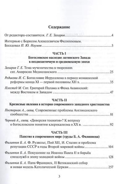 Сборник статей современных российских и зарубежных исследователей посвящен различным проблемам истории западного христианства от позднеантичной до современной эпохи. Особое внимание в нем уделяется латинским раннехристианской и средневековой богословским традициям, в том числе в их соотнесенности с наследием византийского Востока, кризисным явлениям в рамках современного католицизма и англиканского сообщества, а также истории папства в XX-XXI вв. Статьи сборника предваряет интервью с профессором кафедры всеобщей истории ПСТГУ Б. А. Филипповым, в котором он рассказывает как о своем научном пути, так и о подходе к изучению западного христианства.