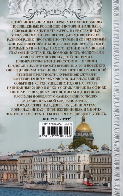 В этой книге собраны очерки Анатолия Иванова, посвященные российской истории, начиная с основания Санкт-Петербурга. На ее страницах увлеченного читателя ожидает удивительное разнообразие: прогулки по старым и современным улицам Северной столицы, знакомство с бытом и нравами XVII — начала XX столетий, в том числе и глазами иностранцев, возможность окунуться в атмосферу минувших дней. Встречи с примечательными личностями — яркими представителями своего времени, а то и вовсе его опередившими. Старинные развлечения различной степени приятности, курьезные случаи и воспоминания мемуаристов, запечатлевших события и слухи ушедших годов на бумаге. Написанные живо и ярко, составленные на основе исторических документов, писем и дневников, рассказы поведают о самых разных людях, оставивших свой след в истории, — государственных деятелях, дипломатах, военачальниках, путешественниках и многих других, и о местах, по которым им довелось ходить.