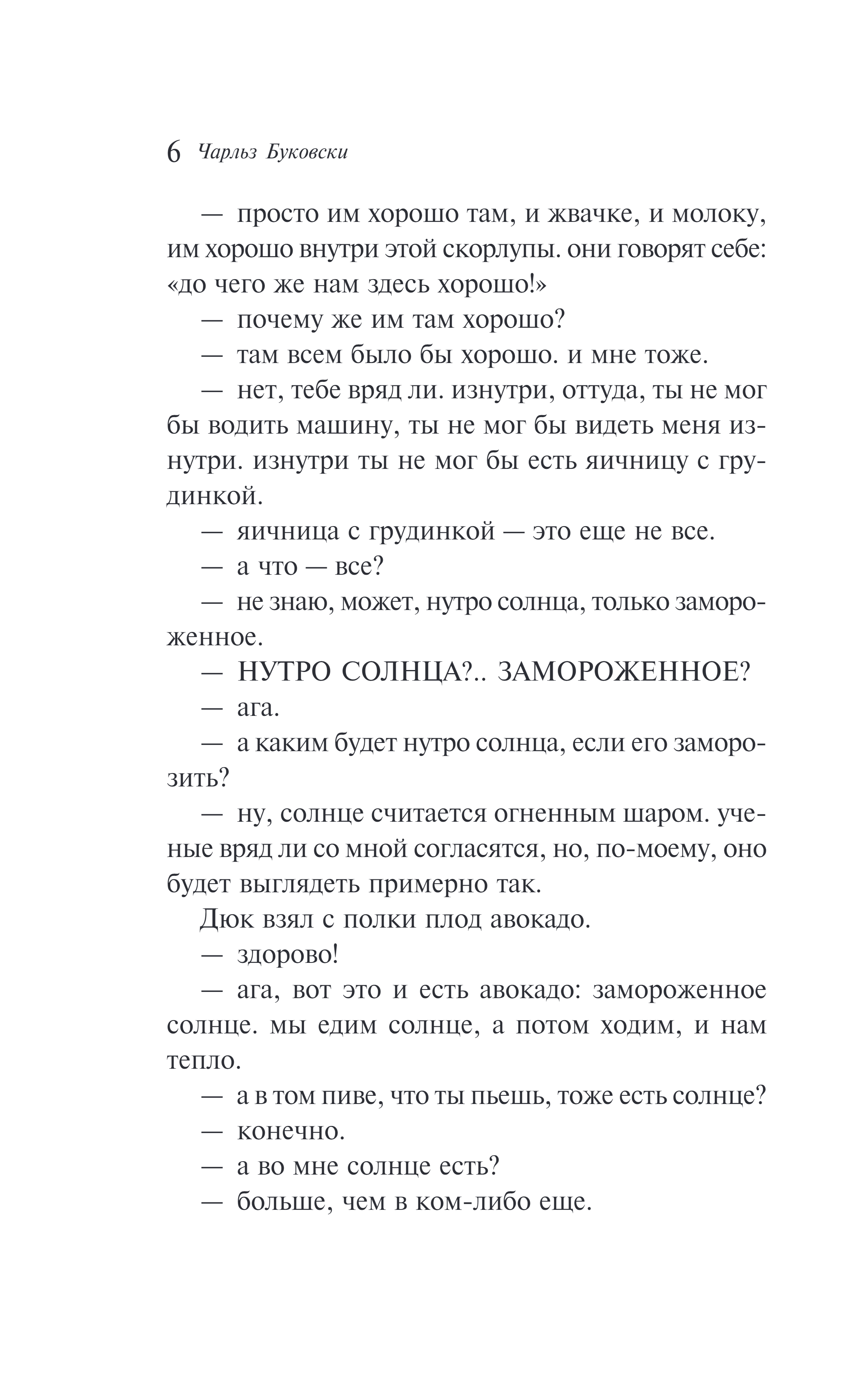 Чарльз Буковски — культовый американский писатель XX века, чья европейская популярность всегда обгоняла американскую. Несмотря на порою шокирующий натурализм, его тексты полны лиричности, даже своеобразной сентиментальности.