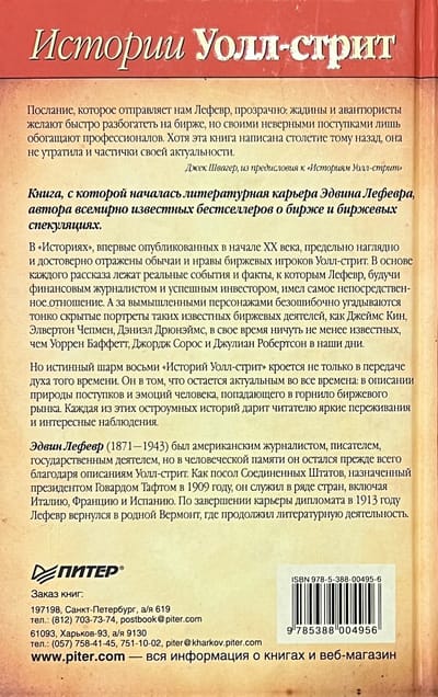 Но истинный шарм восьми историй Уолл-стрит кроется не только в передаче духа того времени. Он в том, что остается актуальным во все времена: в описании природы поступков и эмоций человека, попадающего в горнило биржевого рынка. Каждый из остроумно закрученных сюжетов Эдвина Лефевра сегодня, как и сто лет назад, увлечет всех, кто связан с биржевыми операциями.