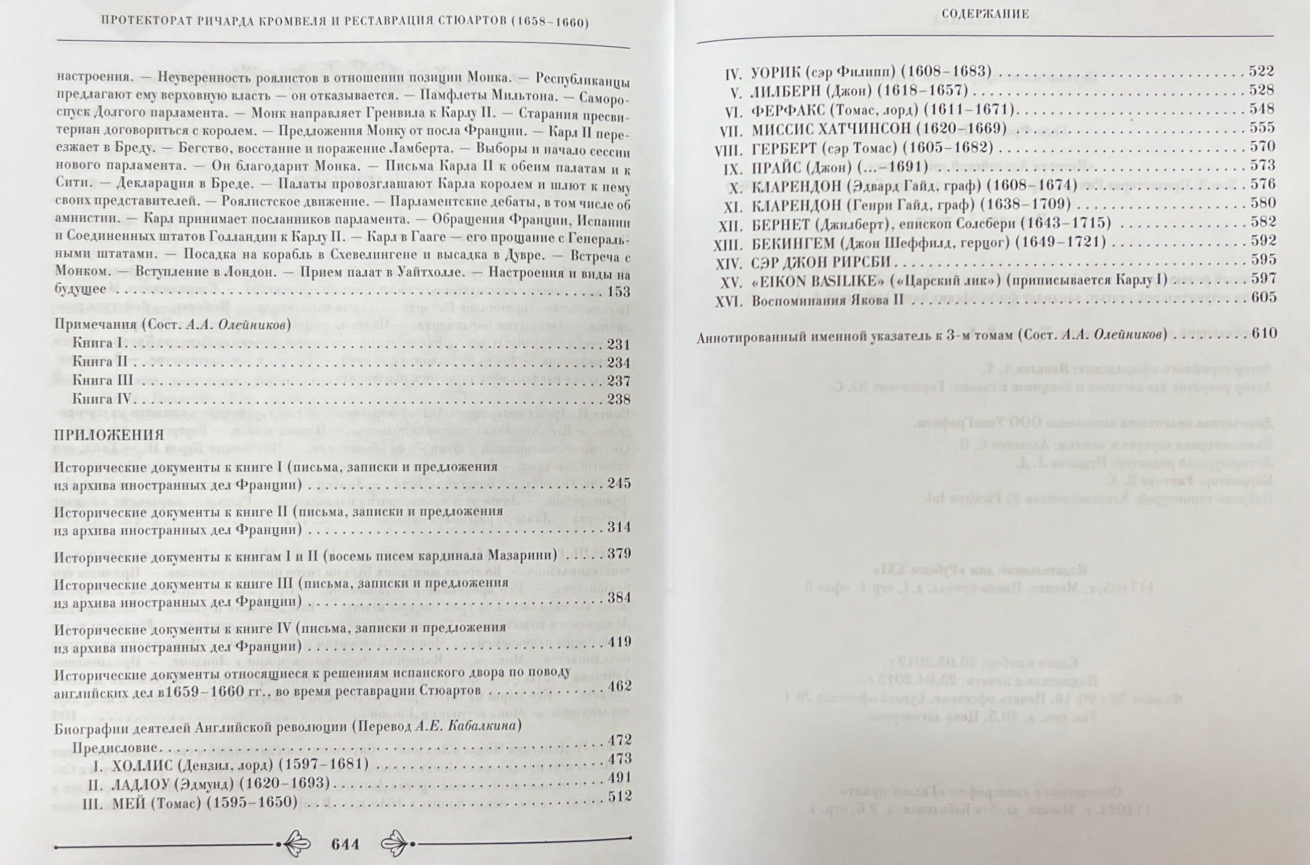 Третий том «Истории Английской революции» Франсуа Гизо содержит описание событий, приведших к краху республиканского правления в Англии в период протектората Ричарда Кромвеля (1658-1659) и завершившихся реставрацией монархии в 1660 г. Издание также включает в себя «Биографии деятелей английской революции», опубликованные Гизо в 1851 г. В приложении содержатся исторические документы, собранные самим Гизо, и непосредственно относящиеся ко времени описываемых событий.
