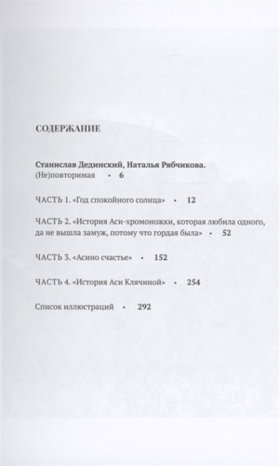 Книга «История Аси Клячиной. (Не)повторимая», составленная историками кино Станиславом Дединским и Натальей Рябчиковой, использует документы из архивов киностудии «Мосфильм», Госфильмофонда РФ, РГАЛИ и материалы из личного архива Андрея Кончаловского, чтобы раскрыть историю того, как этот фильм смог появиться на свет и почему зрители увидели его лишь спустя два десятилетия. Зачем дебютный сценарий Юрия Клепикова несколько раз переписывался на протяжении производства? Каким образом режиссеру удалось совместить в кадре театральную актрису Ию Саввину и обычных жителей Поволжья? С чем связано изменение названий картины - от «Года спокойного солнца» до «Асиного счастья» и «Истории Аси Клячиной»? За какие куски фильма шла наиболее ожесточенная борьба с цензурой? И как именно воспринимали его зрители и критики в 1960-е, в 1980-е и позднее?