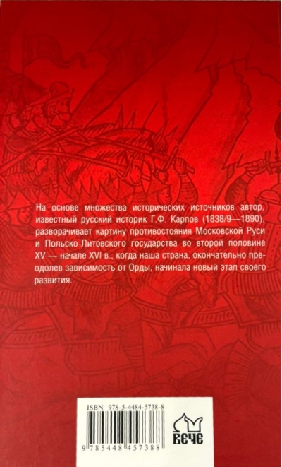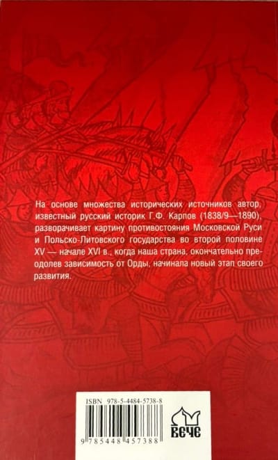 На основе множества исторических источников автор, известный русский историк Г.Ф. Карпов (1838/9—1890) разворачивает картину противостояния Московской Руси и Польско-Литовского государства во второй половине XV — начале XVI вв., когда Россия, окончательно преодолев зависимость от Орды, начинала новый этап своего развития.