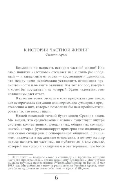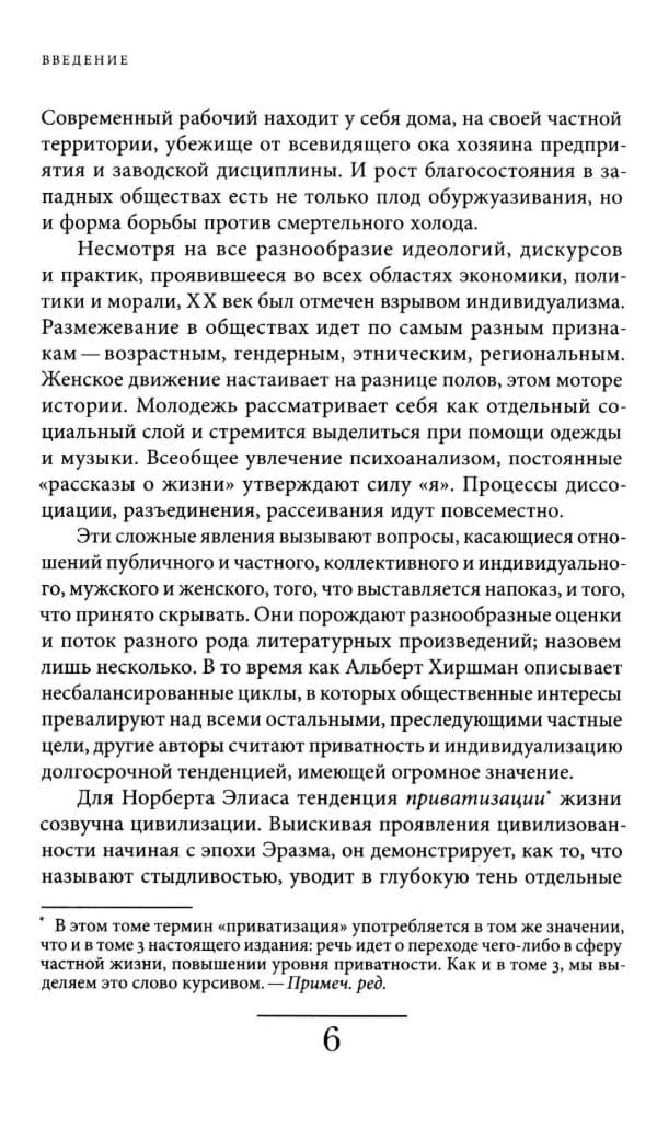 Пятитомная «История частной жизни» — всеобъемлющее исследование, созданное в 1980-е годы группой французских, британских и американских ученых под руководством прославленных историков из Школы «Анналов» — Филиппа Арьеса и Жоржа Дюби. Пятитомник охватывает всю историю Запада с Античности до конца XX века. Перевод сделан по дополненному изданию 1999 года.