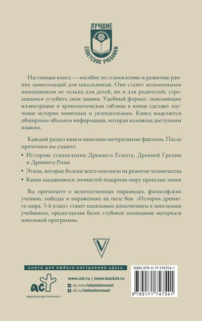 Настоящая книга — пособие по становлению и развитию ранних цивилизаций для школьников. Оно станет незаменимым помощником не только для детей, но и для родителей, стремящихся углубить свои знания. Удобный формат, поясняющие иллюстрации и хронологическая таблица в конце сделают изучение истории понятным и увлекательным. Книга выделяется обширным объемом информации, которая изложена доступным языком.