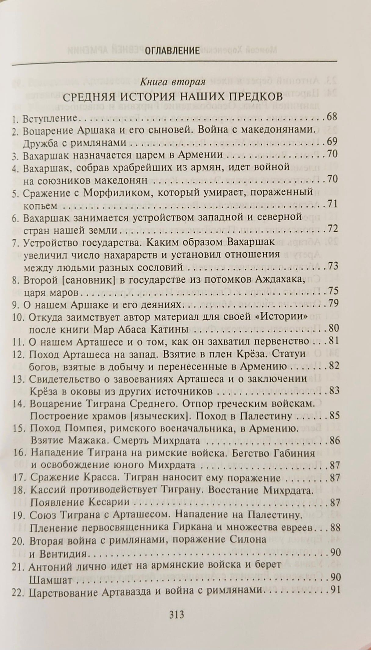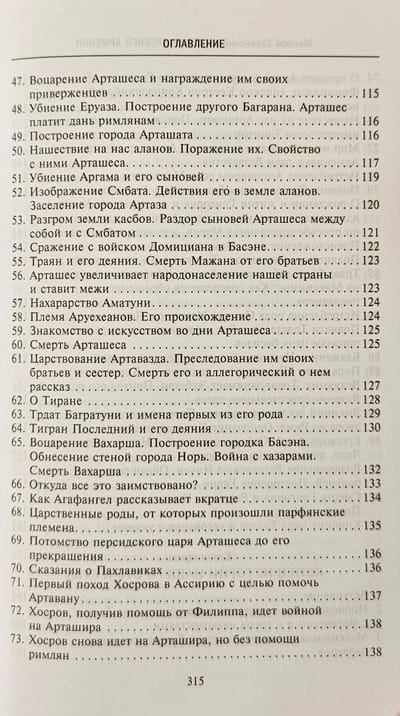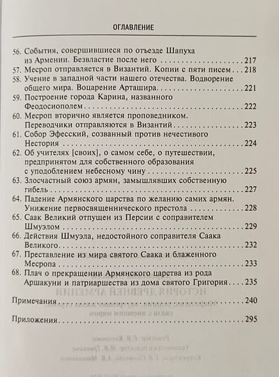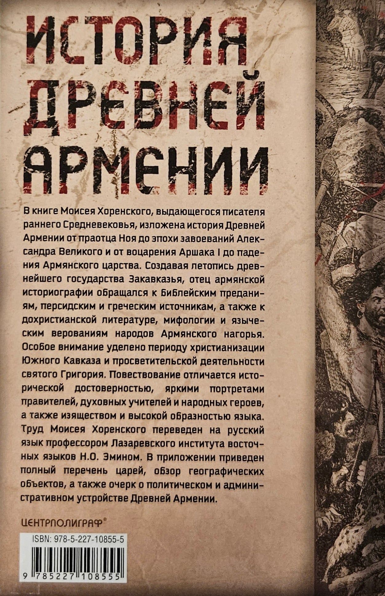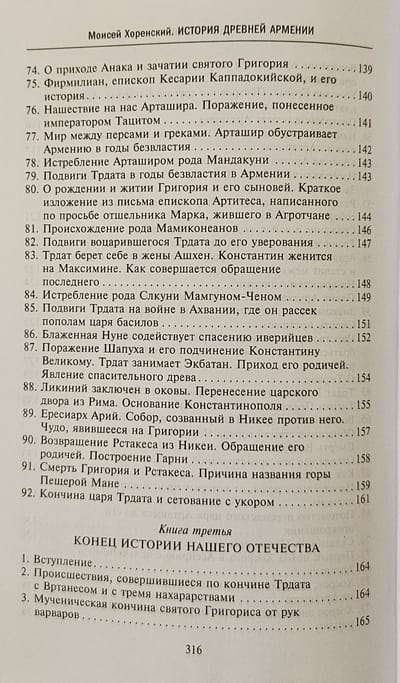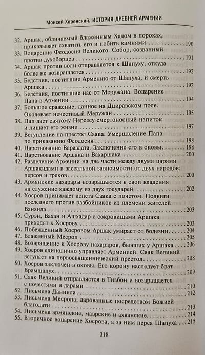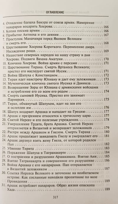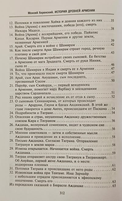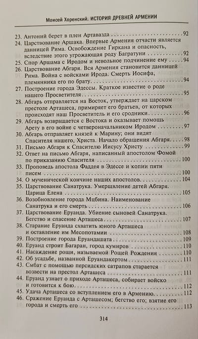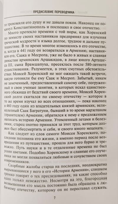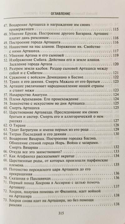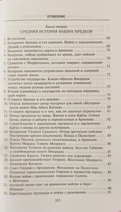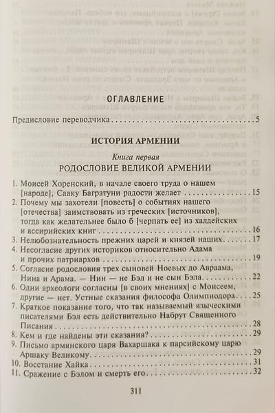 Книга «величайшего авторитета для армянских писателей», «отца армянской истории» в классическом русском переводе Никиты Осиповича Эмина с многочисленными примечаниями и приложениями. Сочинение Мовсеса Хоренаци является первым цельным изложением истории Древней Армении. Сжато, но живо и ярко, классическим языком он излагает не встречающуюся ни у кого из предшествовавших армянских летописцев древнейшую историю своего народа, тесно связывая ее с библейскими преданиями через Иафетова правнука, Гайка, считающегося родоначальником армян. Книга содержит богатейший и уникальный материал по древнеармянской мифологии, народному творчеству, языческой религии, внутренней жизни страны и её связям с миром. В ней имеются также многочисленные данные по истории и культуре сопредельных стран.